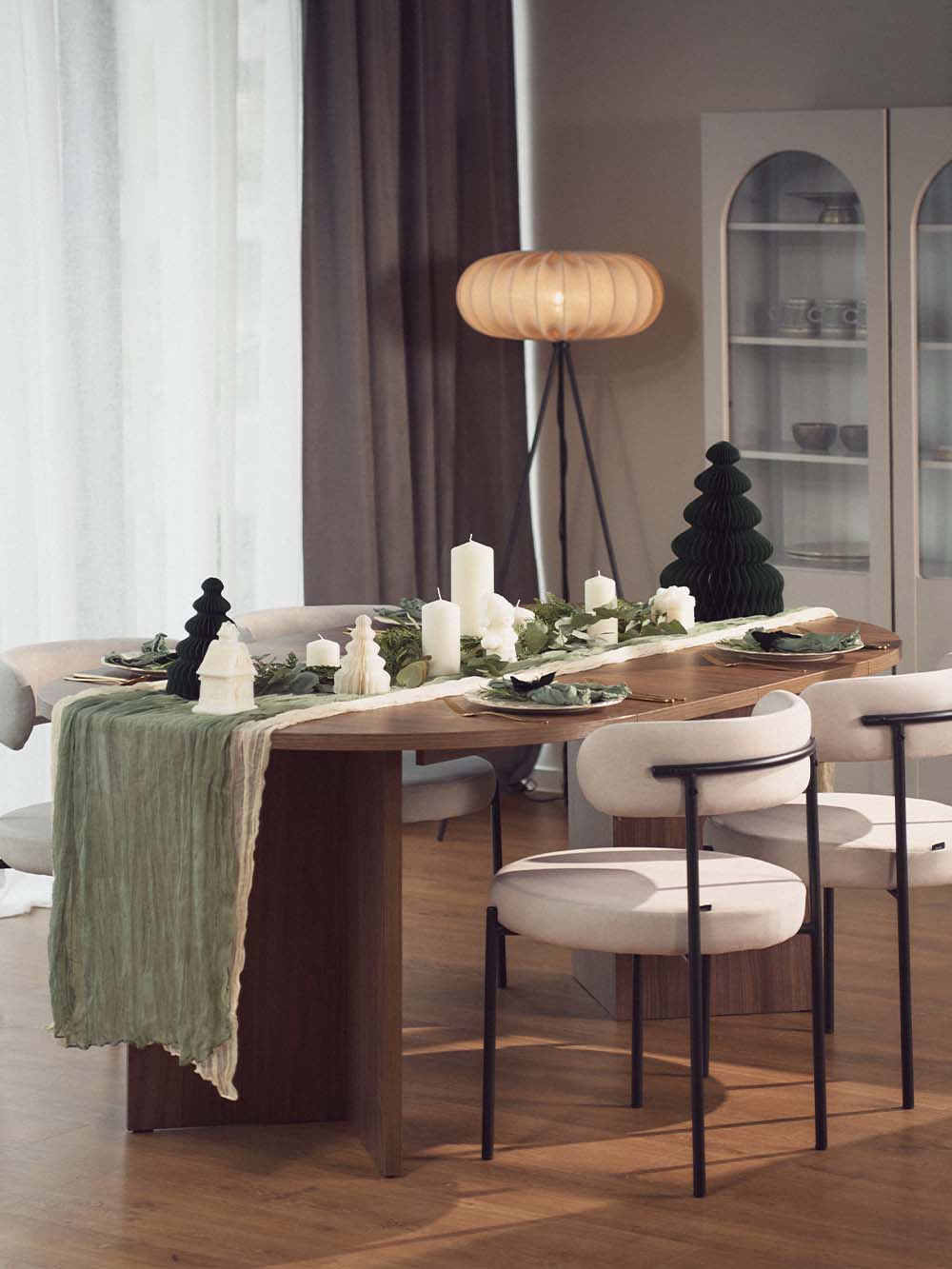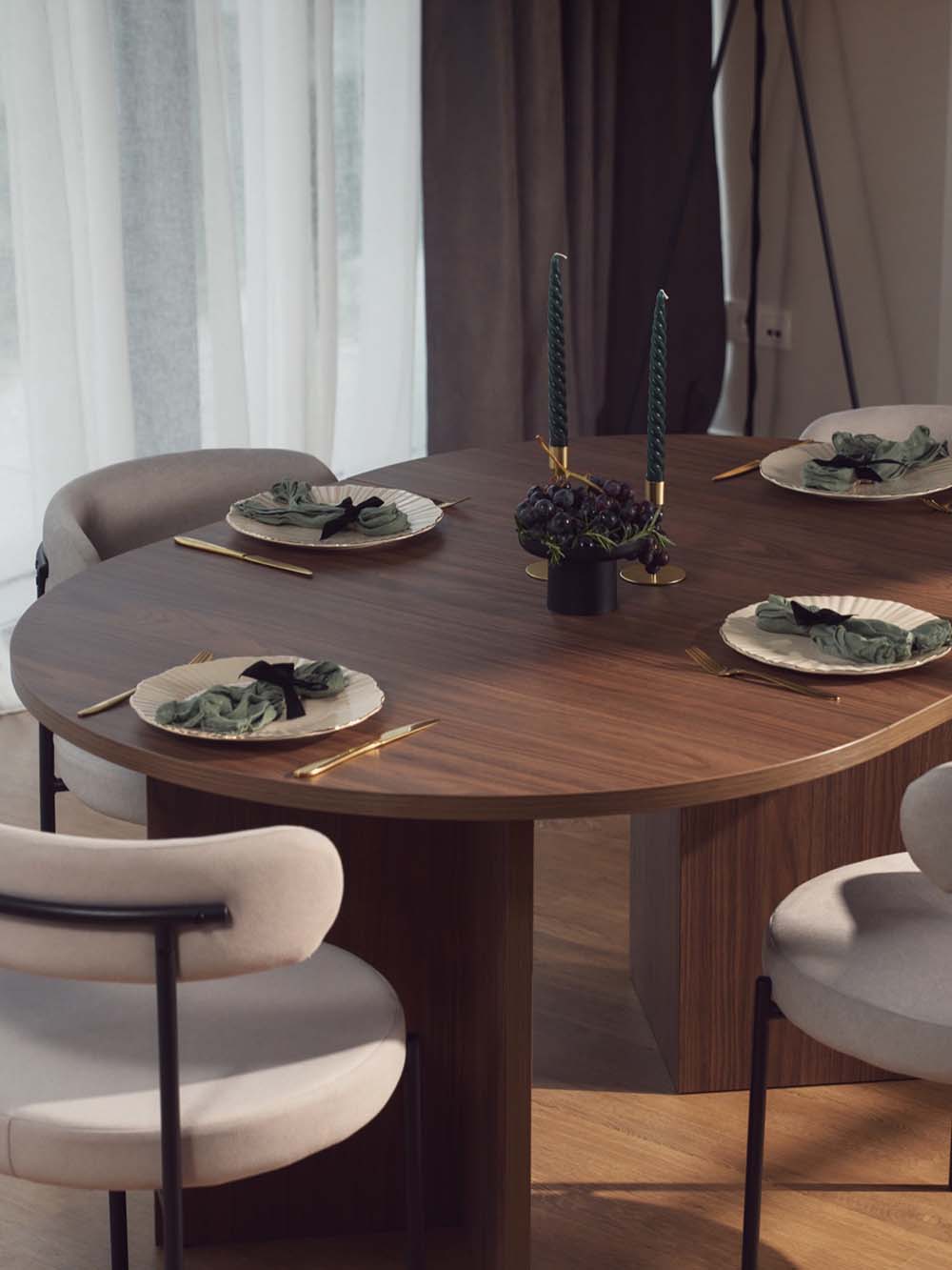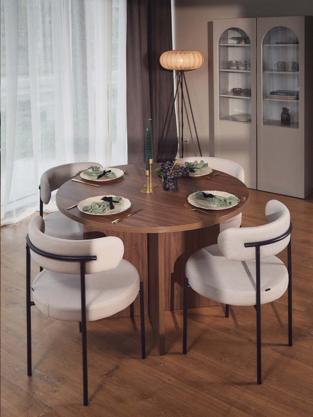 Galimi išoriniai baldo matmenys su viena prailginimo plokšte CM: ilgis / plotis / aukštis: 150 / 110 / 75.