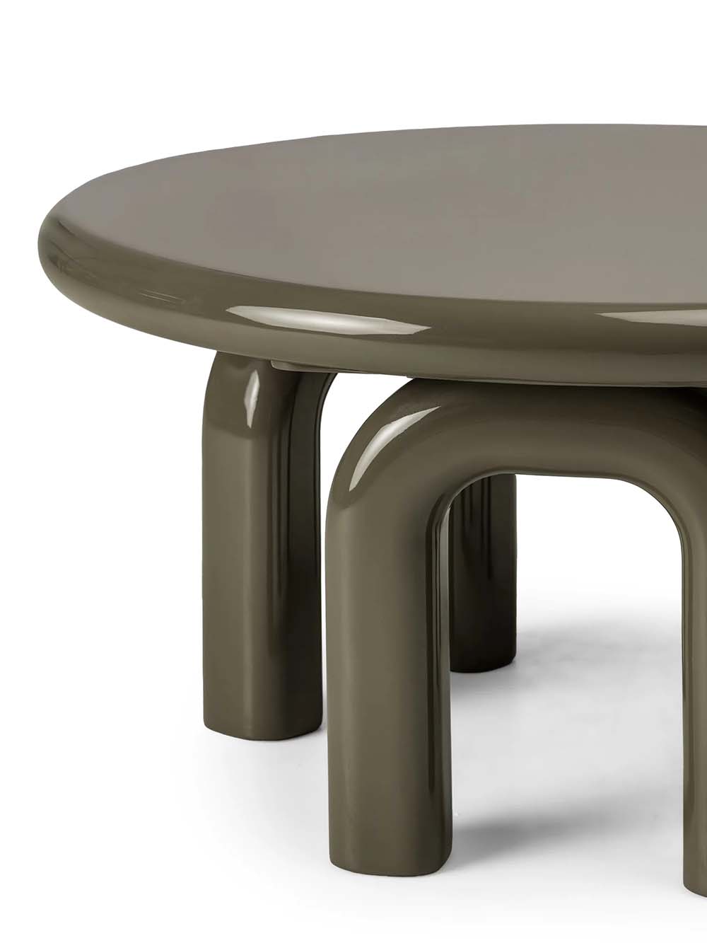 Apvalus kavos staliukas Marnel – išskirtinio dizaino baldas, išsiskiriantis švelniomis, apvaliomis formomis. Žalsvai pilka spalva ir blizgus paviršius kuria subtilios prabangos įspūdį ir paverčia staliuką išraiškingu interjero akcentu. Tvirta konstrukcija užtikrina stabilumą ir komfortišką kasdienį naudojimą.