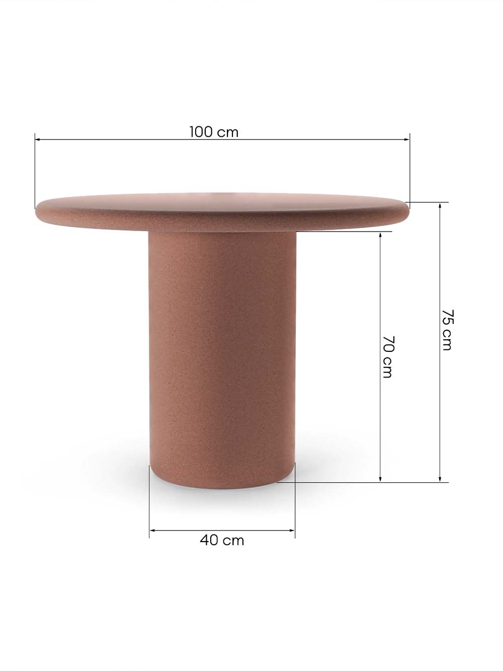 Apvalus lauko stalas Vibo, 100 cm, terakotos