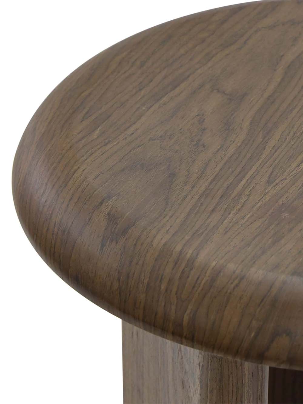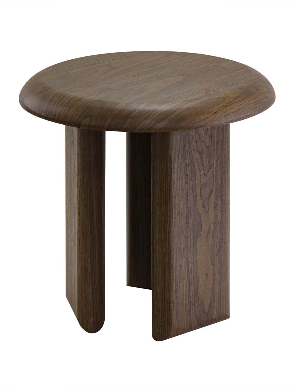 Apvalus šoninis staliukas Luro – išskirtinio dizaino baldas, pasižymintis apvalia forma ir masyviu, skulptūrišku pagrindu. Tamsaus riešuto spalva ir natūralios medienos raštas suteikia šilumos bei solidumo, o stabilus pagrindas užtikrina patogų kasdienį naudojimą. Kompaktiškas dydis leidžia staliuką lengvai pritaikyti šalia sofos, fotelio ar lovos – tiek daiktams pasidėti, tiek kaip stilingą interjero akcentą.