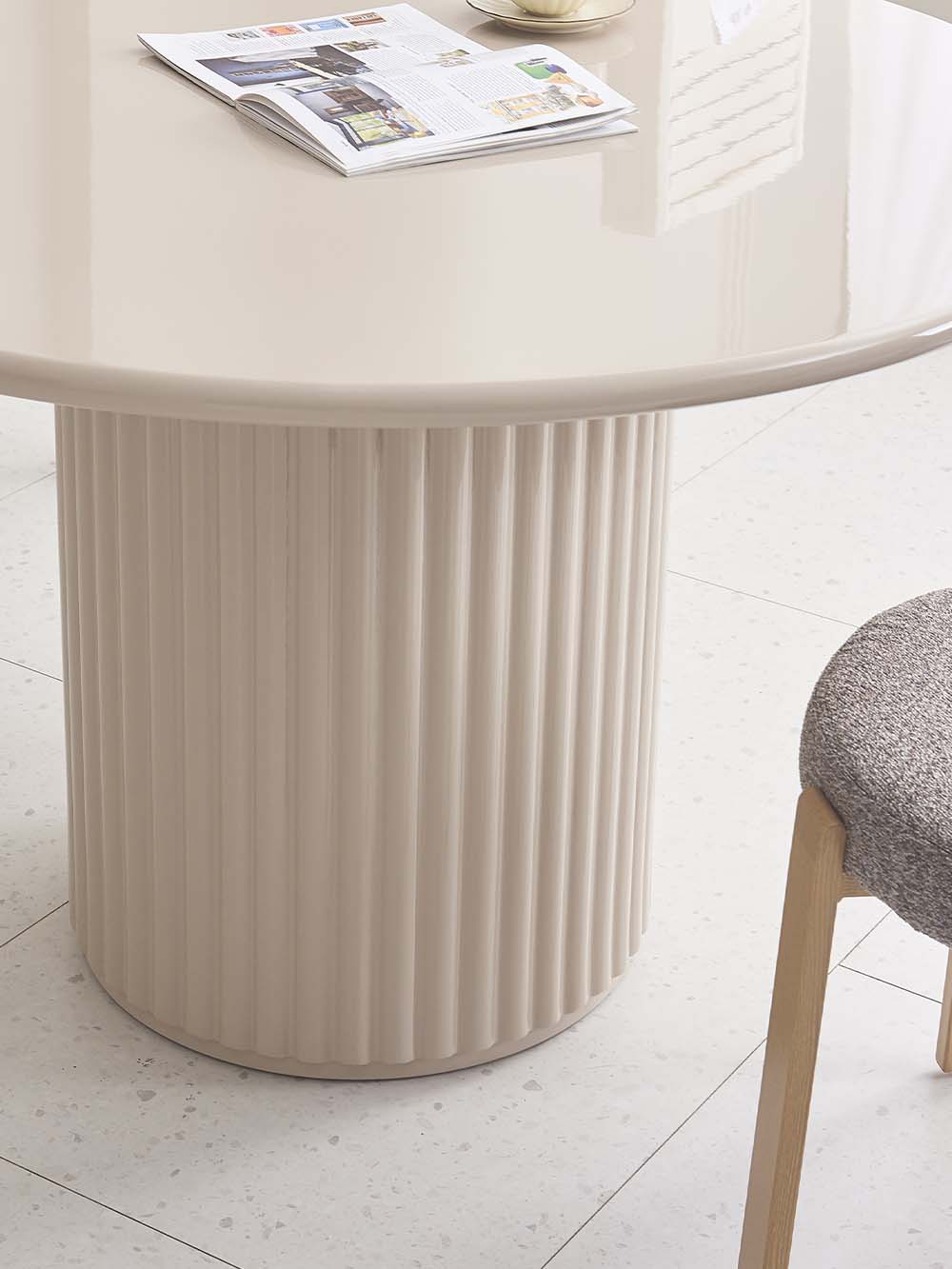 Priežiūra: Blizgūs paviršiai reikalauja švelnios priežiūros, nes yra jautresni įbrėžimams ir pažeidimams. Siekiant išvengti įbrėžimų, rekomenduojama naudoti padėkliukus ar apsauginius kilimėlius po statomais daiktais. Valykite minkšta, drėgna mikropluošto šluoste, venkite šiurkščių medžiagų ir stiprių cheminių priemonių. Laikykite baldą atokiau nuo tiesioginių saulės spindulių. Jei reikia, naudokite švelnius priežiūros preparatus, skirtus lakiniams arba aukšto blizgesio paviršiams (be vaško priedų).