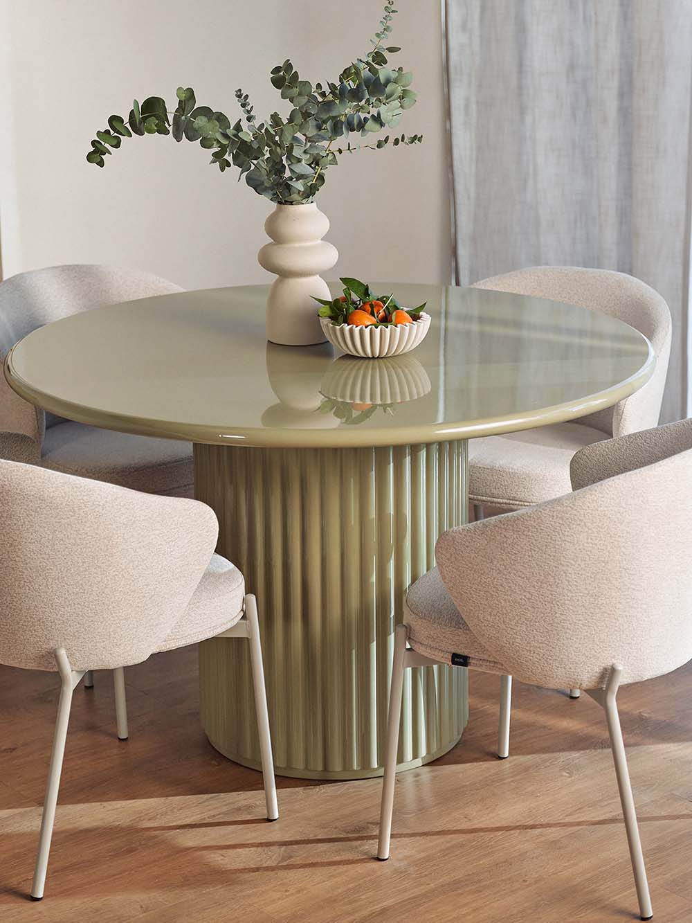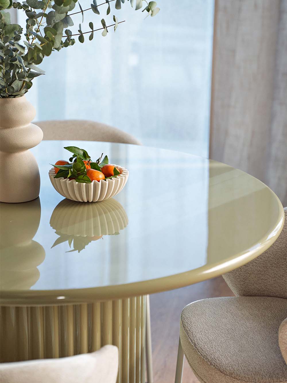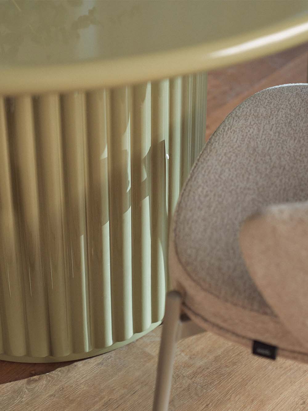 Priežiūra: Blizgūs paviršiai reikalauja švelnios priežiūros, nes yra jautresni įbrėžimams ir pažeidimams. Siekiant išvengti įbrėžimų, rekomenduojama naudoti padėkliukus ar apsauginius kilimėlius po statomais daiktais. Valykite minkšta, drėgna mikropluošto šluoste, venkite šiurkščių medžiagų ir stiprių cheminių priemonių. Laikykite baldą atokiau nuo tiesioginių saulės spindulių. Jei reikia, naudokite švelnius priežiūros preparatus, skirtus lakiniams arba aukšto blizgesio paviršiams (be vaško priedų).