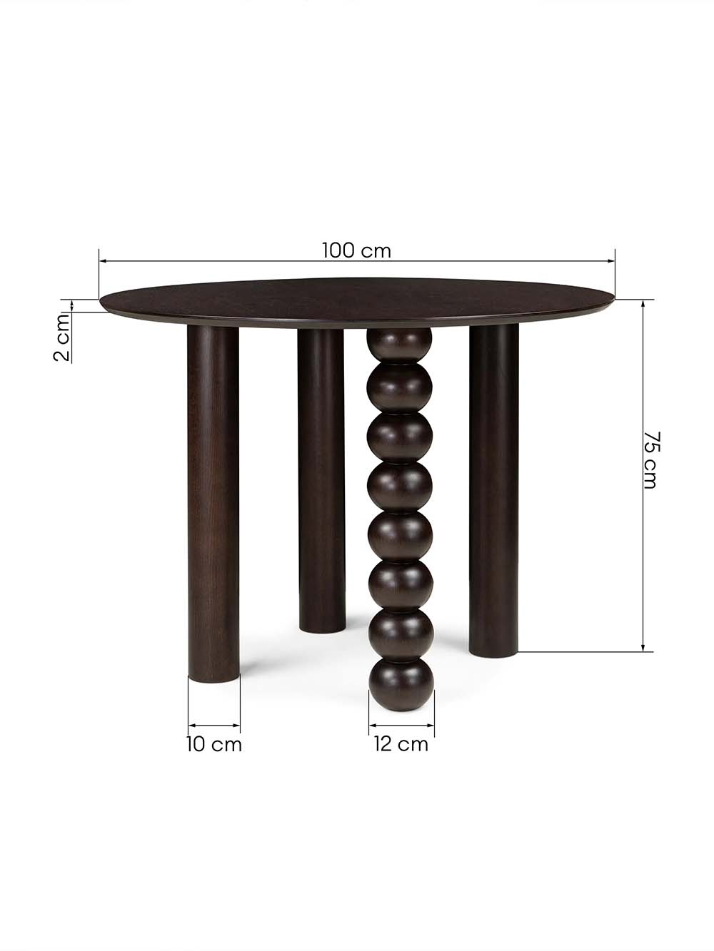 Išoriniai baldo matmenys: ilgis / plotis / aukštis, cm: 100 / 100 / 75.
