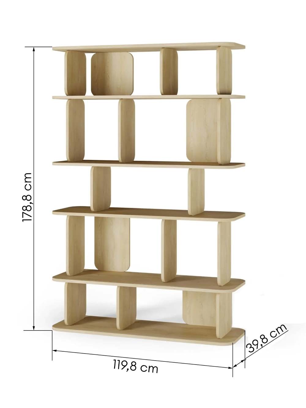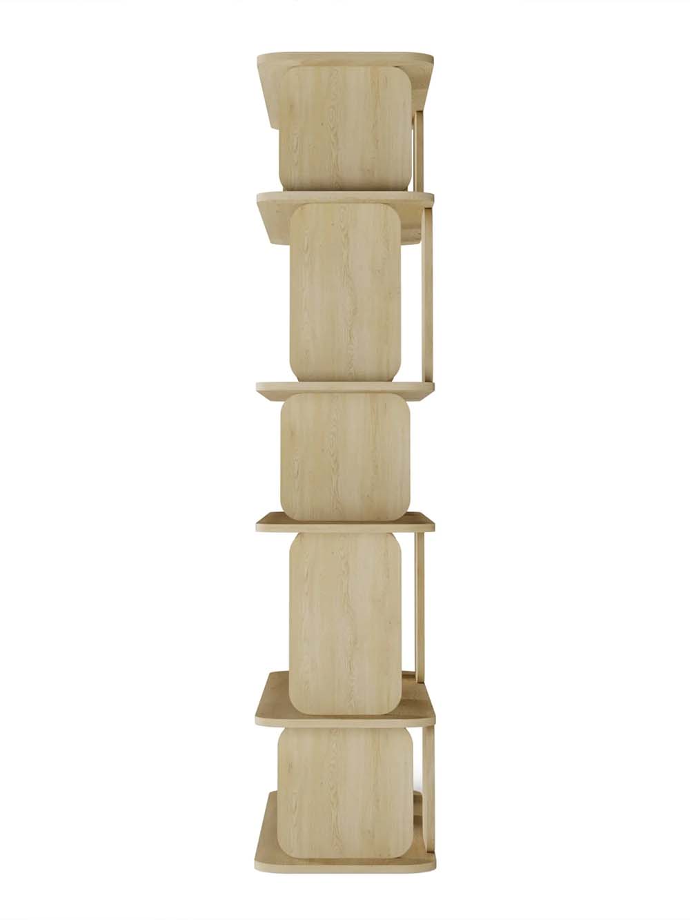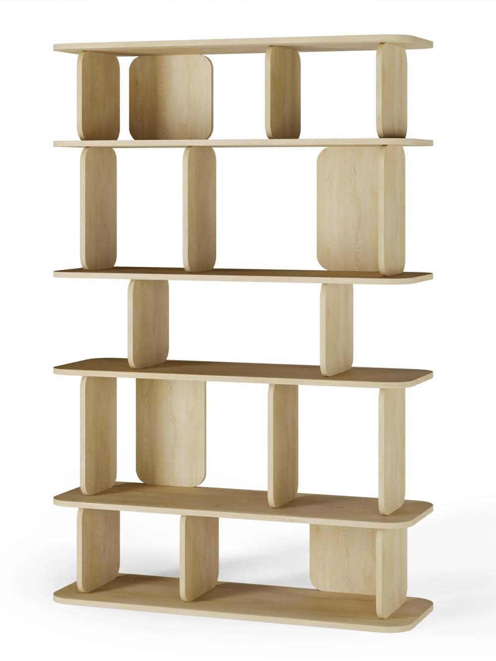 Aukšta lentyna Haru – minimalistinio dizaino baldas, išsiskiriantis švariomis geometrinėmis formomis ir švelniai užapvalintais kraštais. Ąžuolo atspalvis suteikia natūralumo ir šilumos pojūtį, o aukšta konstrukcija su keliais lentynų lygiais leidžia patogiai išdėstyti knygas, dekoracijas ar kasdienius daiktus. Subalansuotas dizainas užtikrina stabilumą ir estetišką erdvės vaizdą.