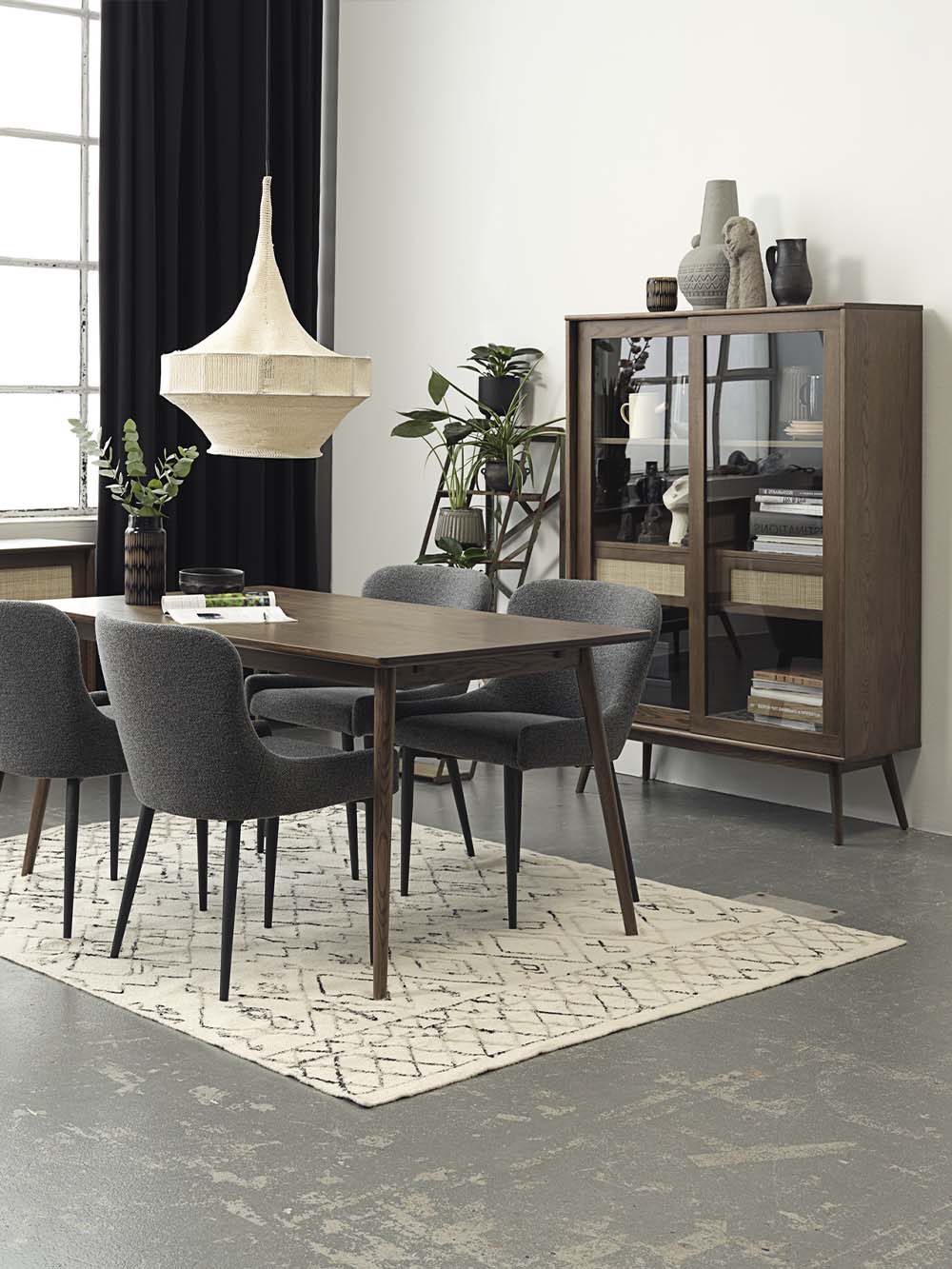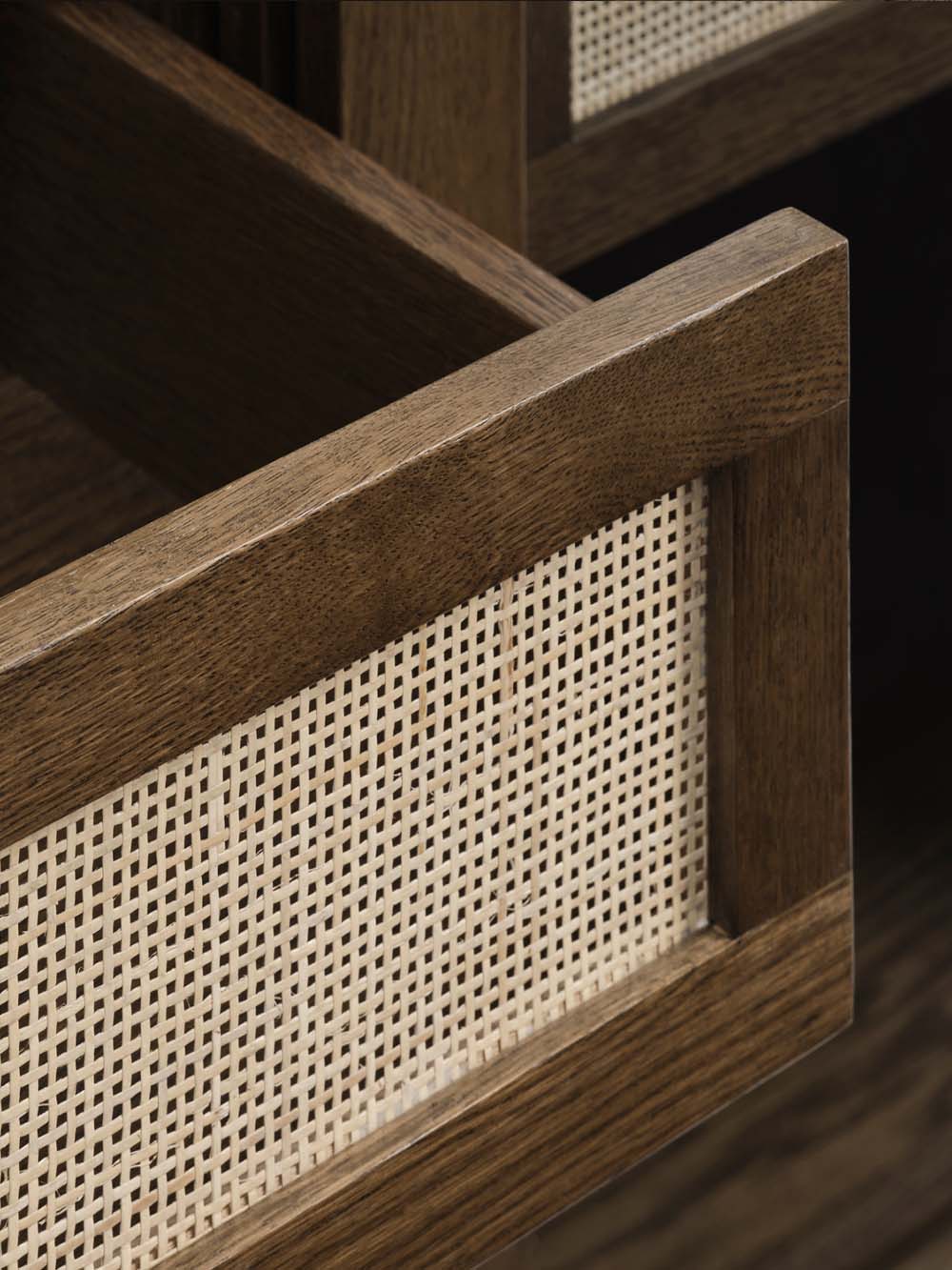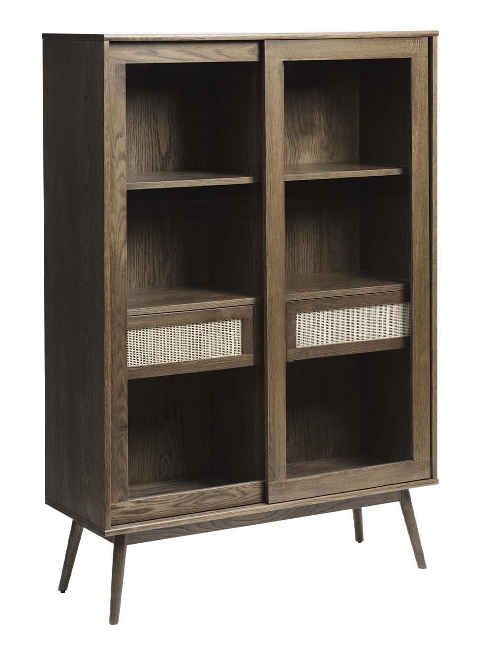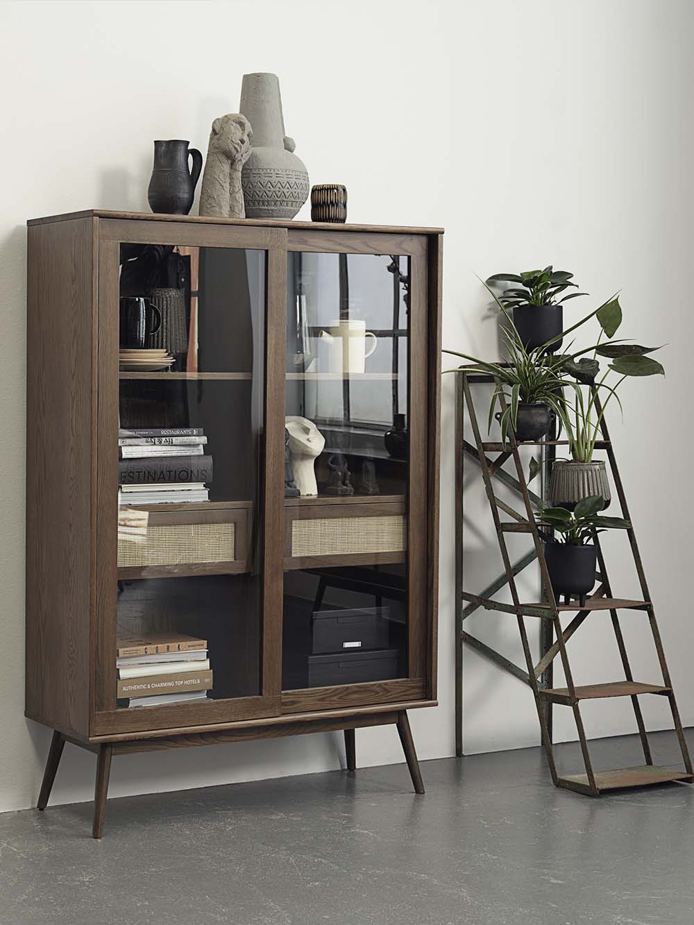 Korpuso medžiaga: ąžuolo masyvas, natūraliu ąžuolo lukštu faneruota MDF plokštė, stiklas.