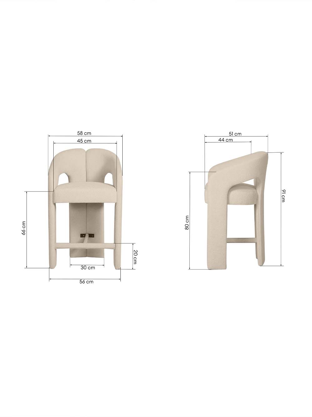 Išoriniai baldo matmenys: plotis / gylis / aukštis, cm: 58 / 51 / 91.