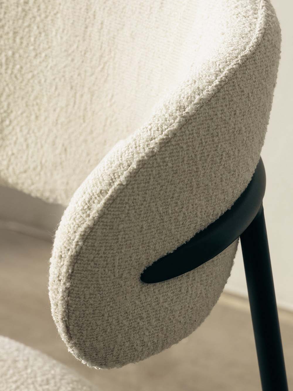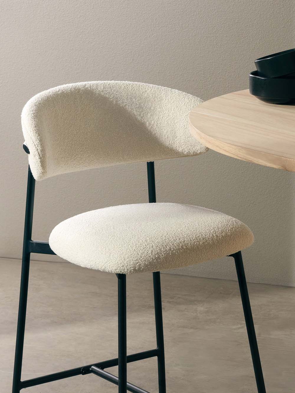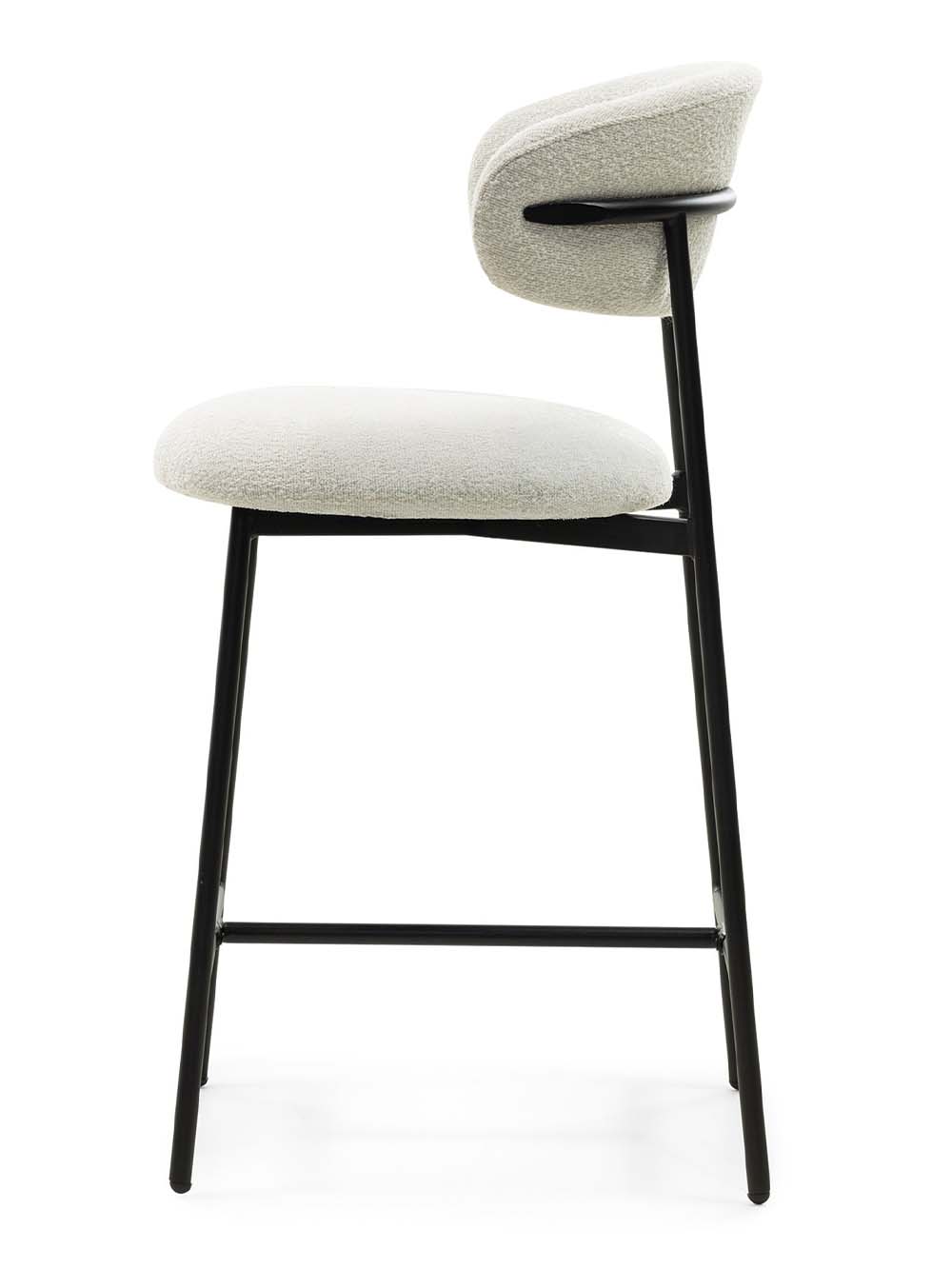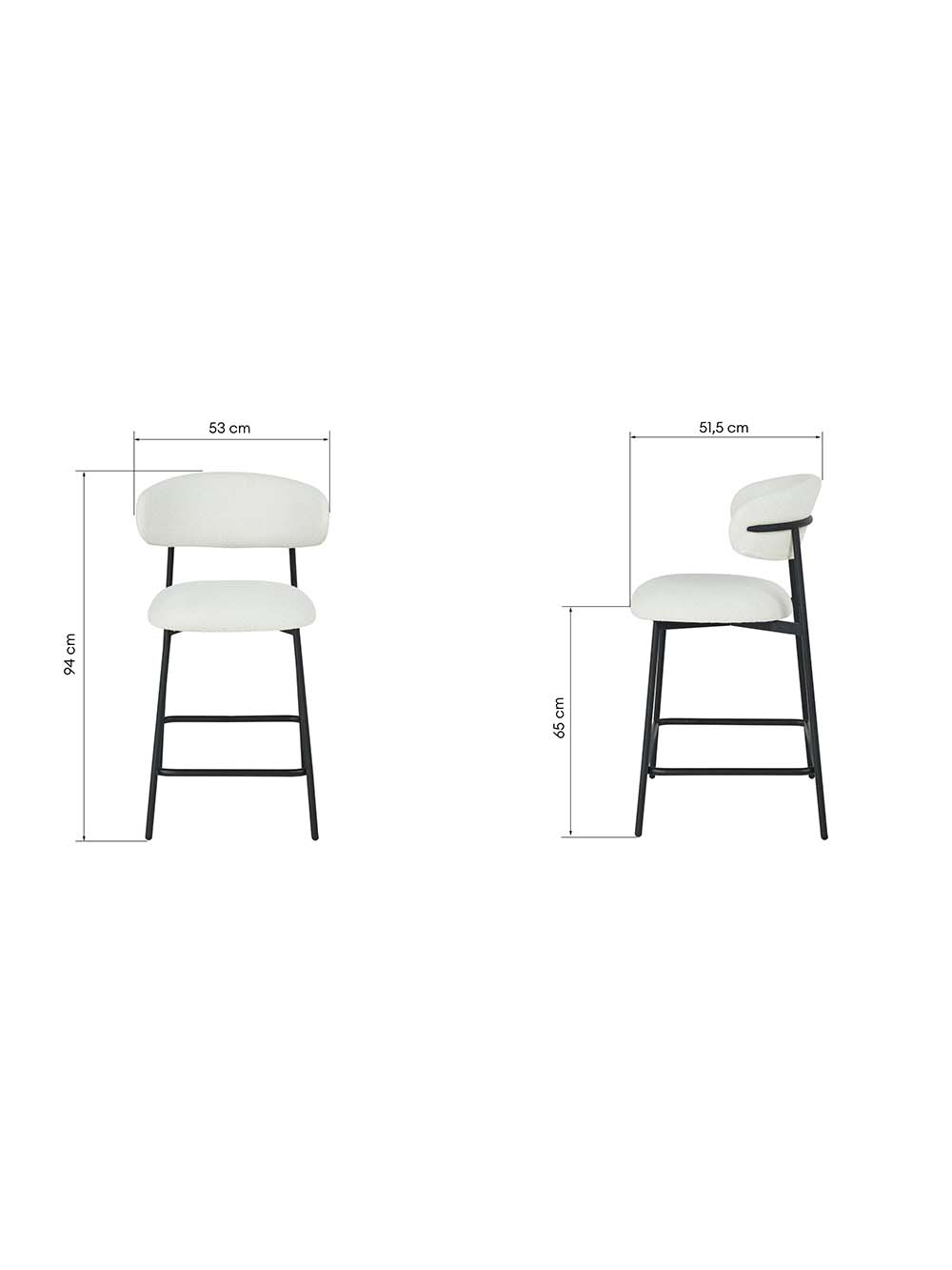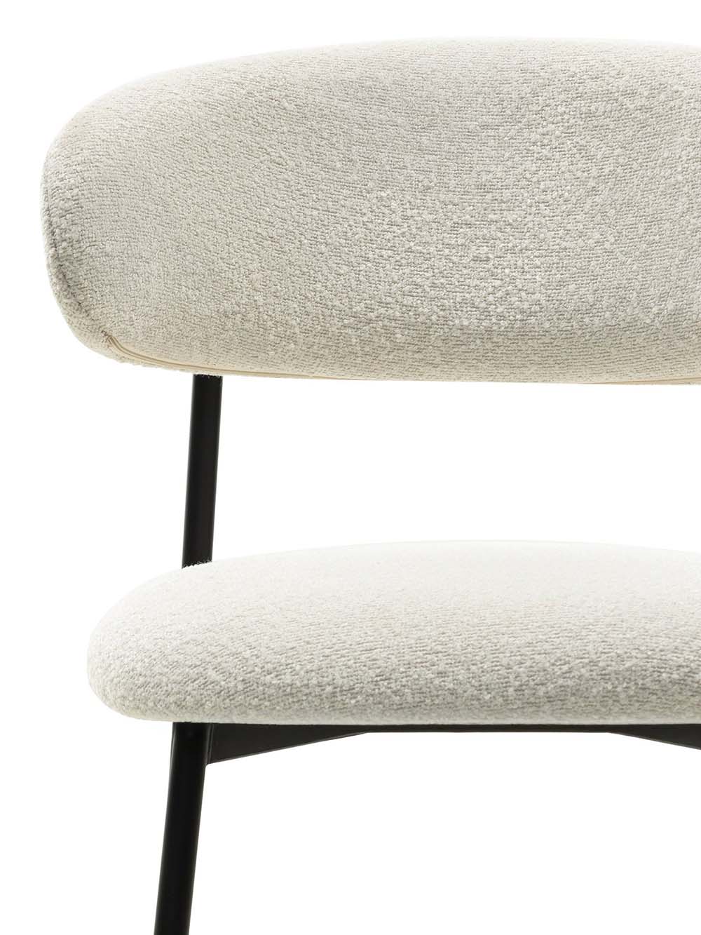 Baro kėdė Luca – modernus ir stilingas baldas, suteiksiantis jūsų erdvei elegancijos ir komforto. Sėdimoji dalis ir užapvalintas atlošas, aptraukti kreminės spalvos boucle audiniu, ne tik atrodo išskirtinai, bet ir užtikrina jaukumą bei komfortą sėdint. Juoda metalinė konstrukcija garantuoja stabilumą ir tvirtumą, puikiai derėdama prie minimalistinių bei šiuolaikinių interjerų. Tai baldas, kuris lengvai taps funkcionaliu ir dekoratyviu jūsų virtuvės ar baro akcentu.