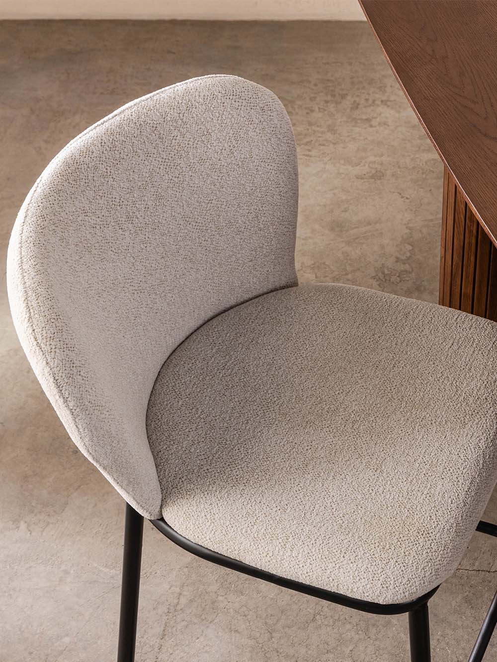 Audinio tipas: tai šenilinis audinys su juntama, struktūrine pynimo faktūra, suteikiančia paviršiui trimačio efekto ir subtilaus žvilgesio. Naudojant skirtingų atspalvių siūlus, audinyje išgaunamas lengvas melanžo efektas, todėl kiekvienas jo fragmentas atrodo unikalus. Audinys pasižymi atsparumu blukimui, nesivelia ir yra atsparus „pillingui“, todėl ilgai išlaiko estetinę išvaizdą net ir intensyviai naudojamas.