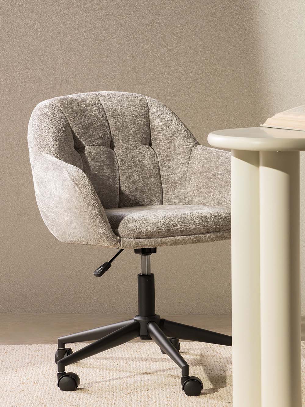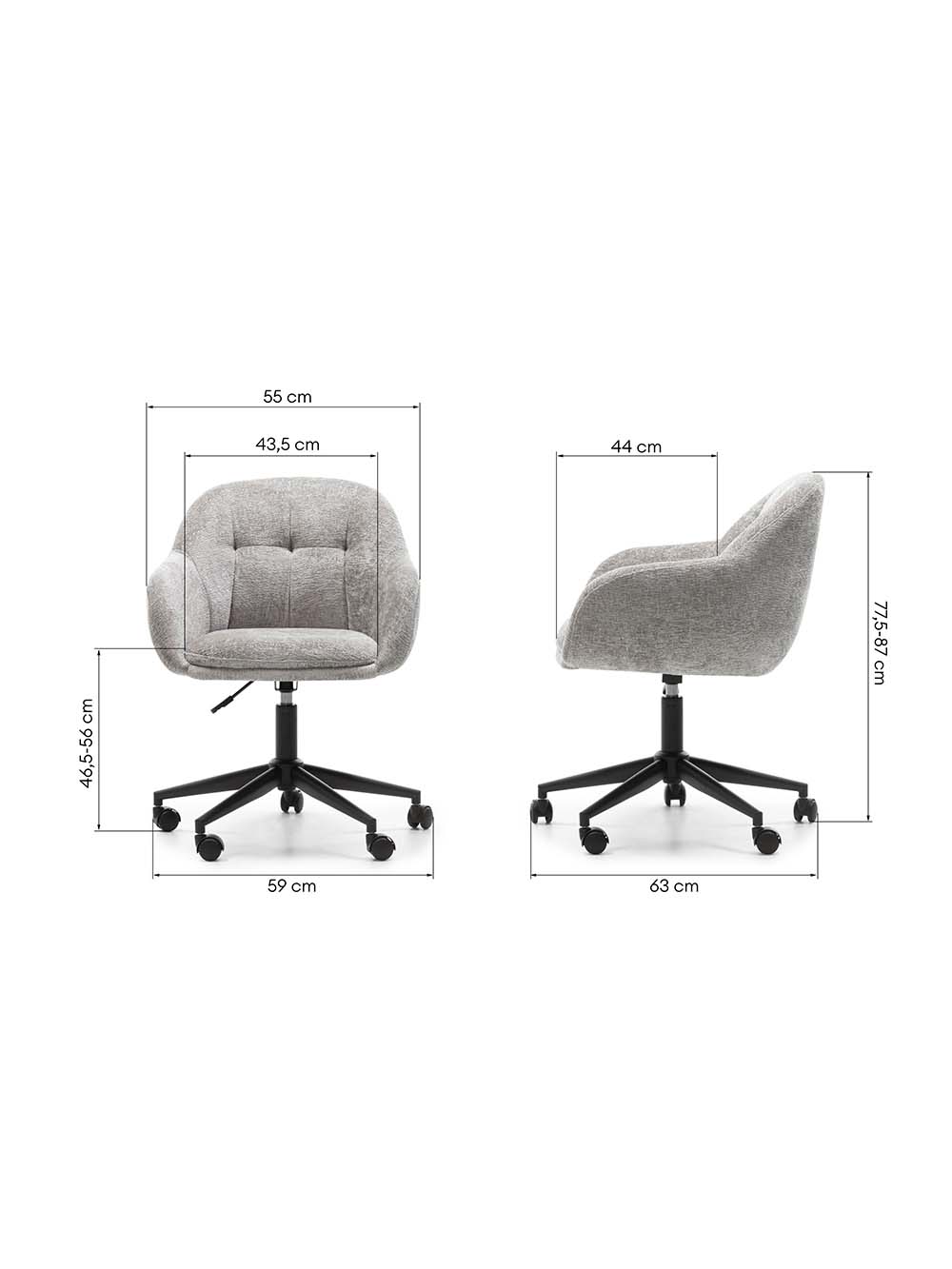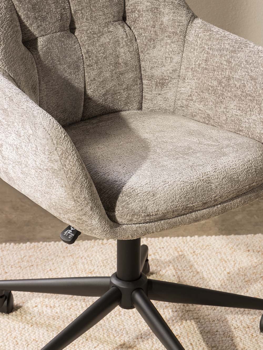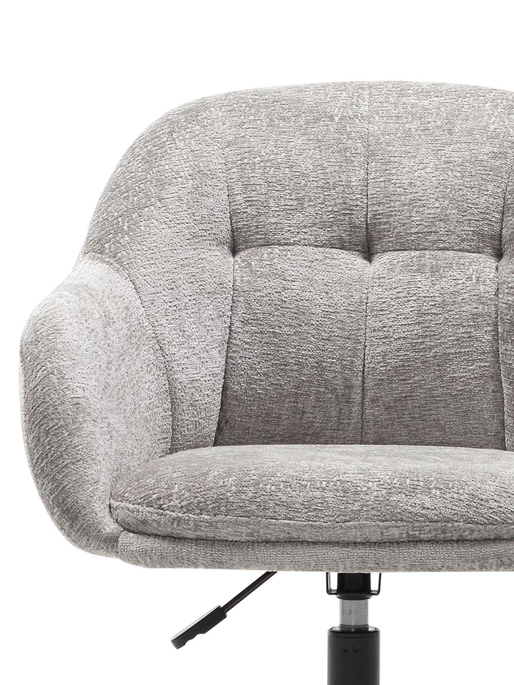 Biuro kėdė Divine sujungia modernų dizainą ir patogumą, suteikdama darbo erdvei stiliaus bei komforto. Minkšta sėdynė ir atlošas, aptraukti šviesiai pilkos spalvos audiniu su dekoratyvinėmis siūlėmis, užtikrina malonią atramą net ilgesnių darbo valandų metu. Reguliuojamo aukščio mechanizmas ir 360° pasukama bazė leidžia lengvai prisitaikyti prie poreikių, o tvirta metalinė konstrukcija garantuoja stabilumą. Tai elegantiškas pasirinkimas tiek biurui, tiek namų kabinetui.