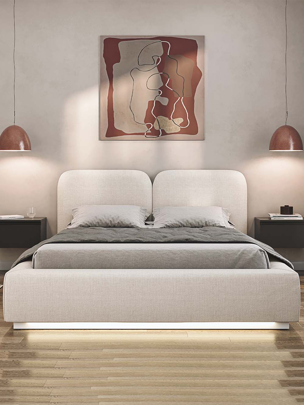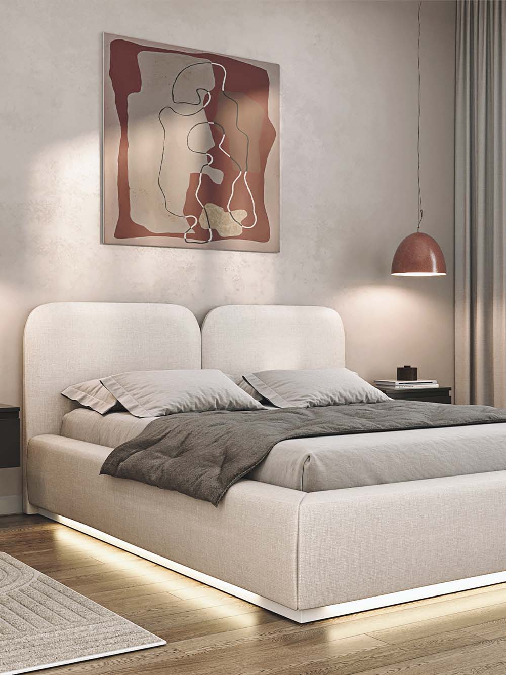 Patalynės dėžė: Yra. Atidaroma iš priekio. Yra dvi talpos perskirtos vertikalia pertvara. Pakėlimo mechanizmo tipas - dujinis.