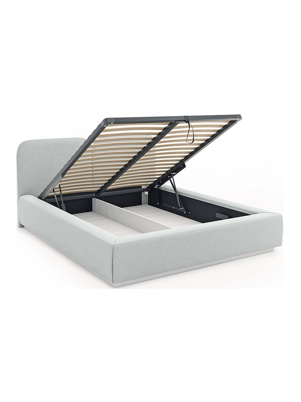 Patalynės dėžė: Yra. Atidaroma iš priekio. Yra dvi talpos perskirtos vertikalia pertvara. Pakėlimo mechanizmo tipas - dujinis.