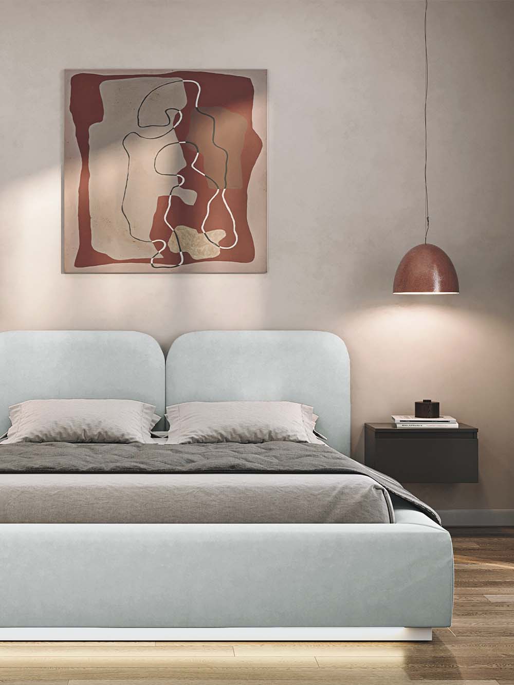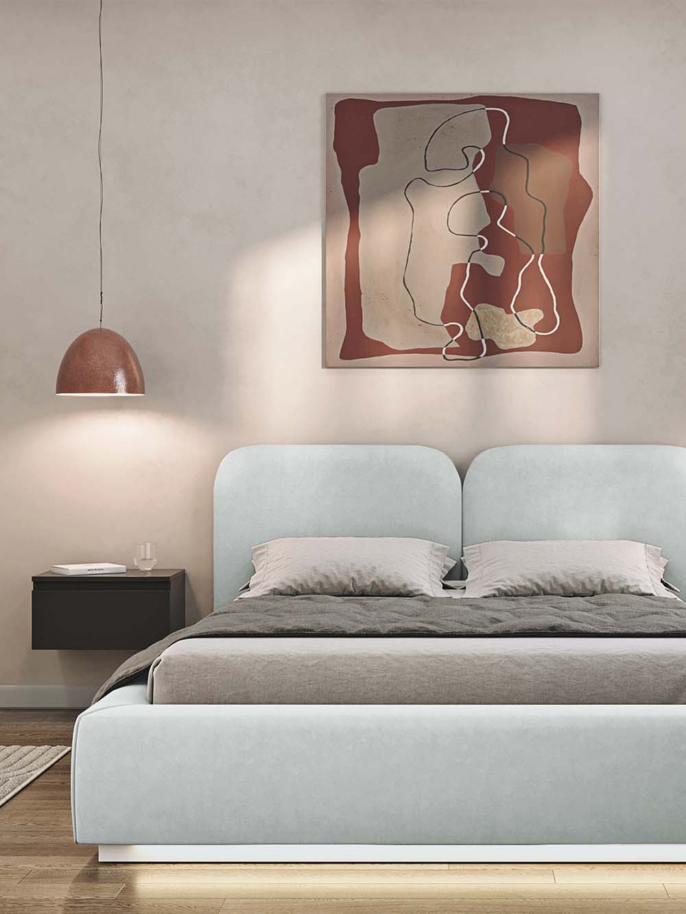 Bendri lovos matmenys 140 cm pločio čiužiniui: plotis x ilgis x aukštis: 165 x 220x 100cm.