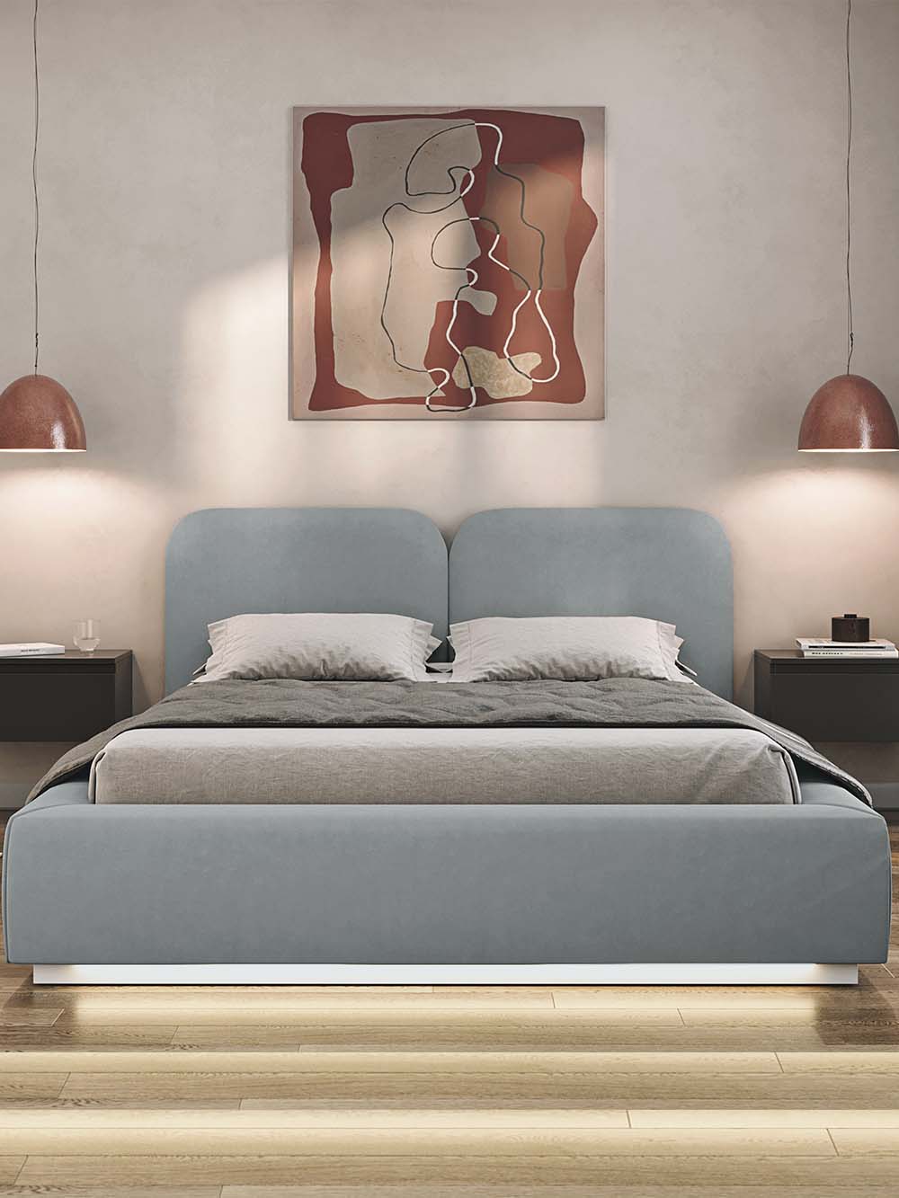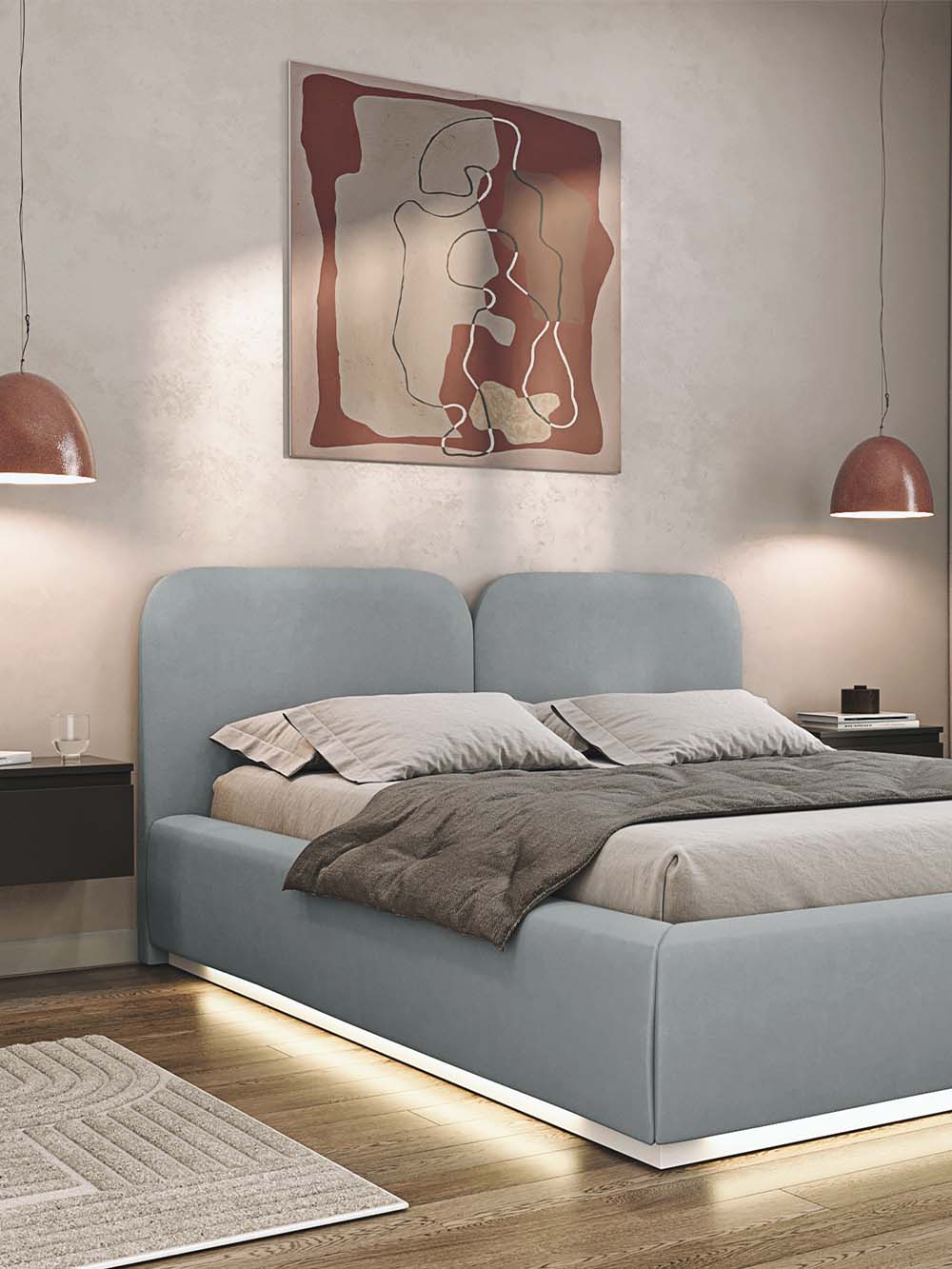Patalynės dėžė: Yra. Atidaroma iš priekio. Yra dvi talpos perskirtos vertikalia pertvara. Pakėlimo mechanizmo tipas - dujinis.