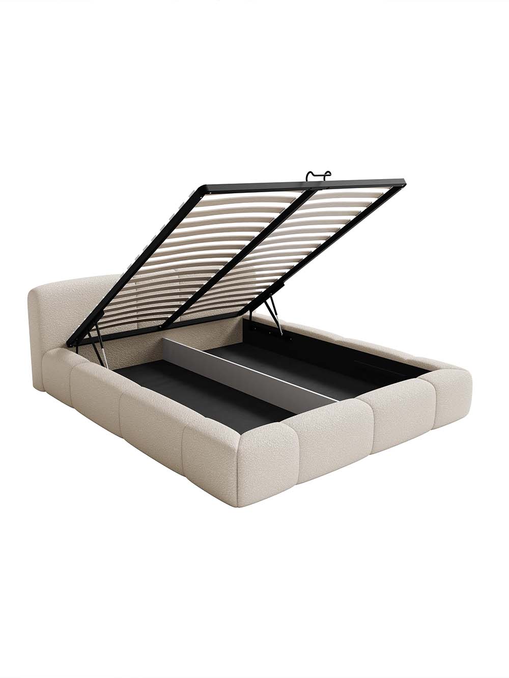 Patalynės dėžės dugnas: Patalynės laikymo dugnas pagamintas iš Wigofil – lengvos, kvėpuojančios ir drėgmės nebijančios medžiagos, kuri neleidžia kauptis dulkėms bei pelėsiui. Jis tvirtinamas Velcro juosta, todėl dugną galima lengvai nuimti, išvalyti ir vėl pritvirtinti, užtikrinant patogią priežiūrą ir higieną.