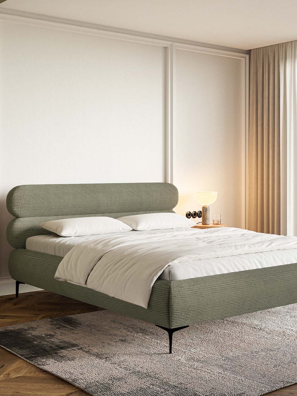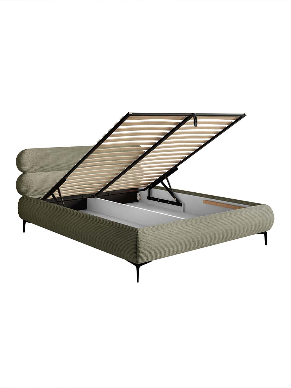 Patalynės dėžė: yra. Atidaroma iš priekio. Yra dvi talpos perskirtos vertikalia pertvara. Pakėlimo mechanizmo tipas - dujinis.