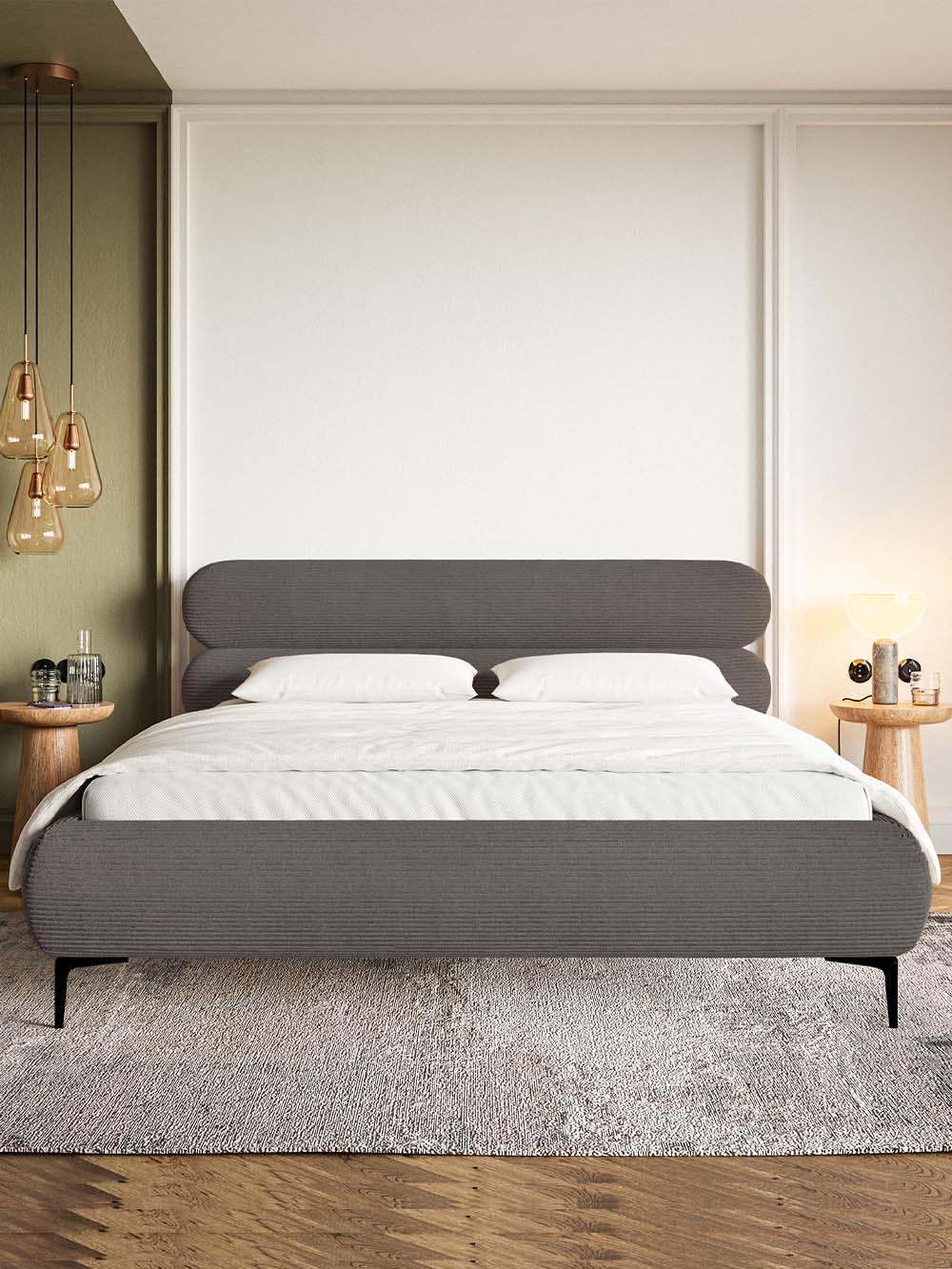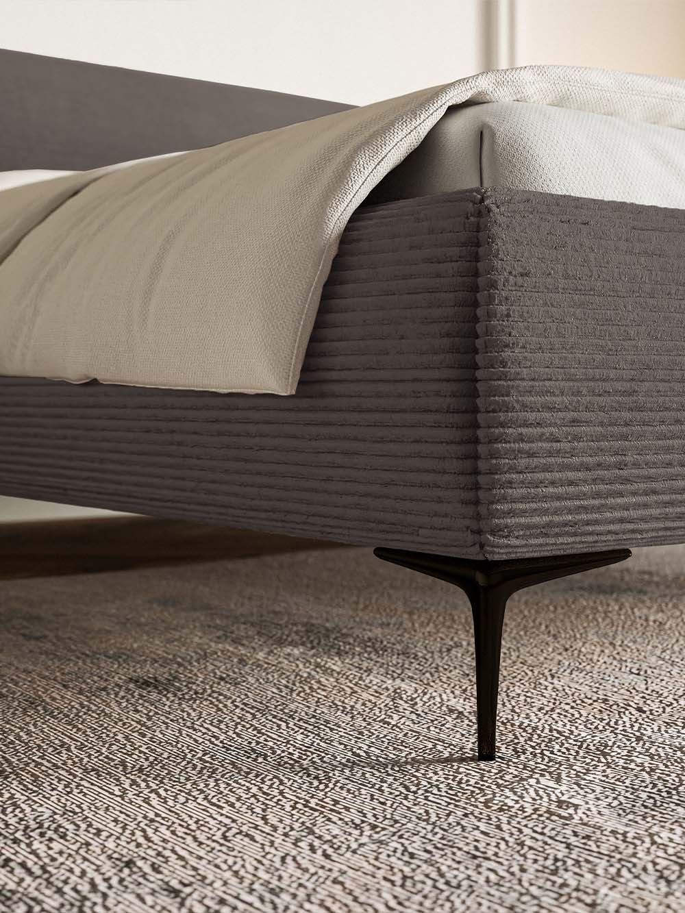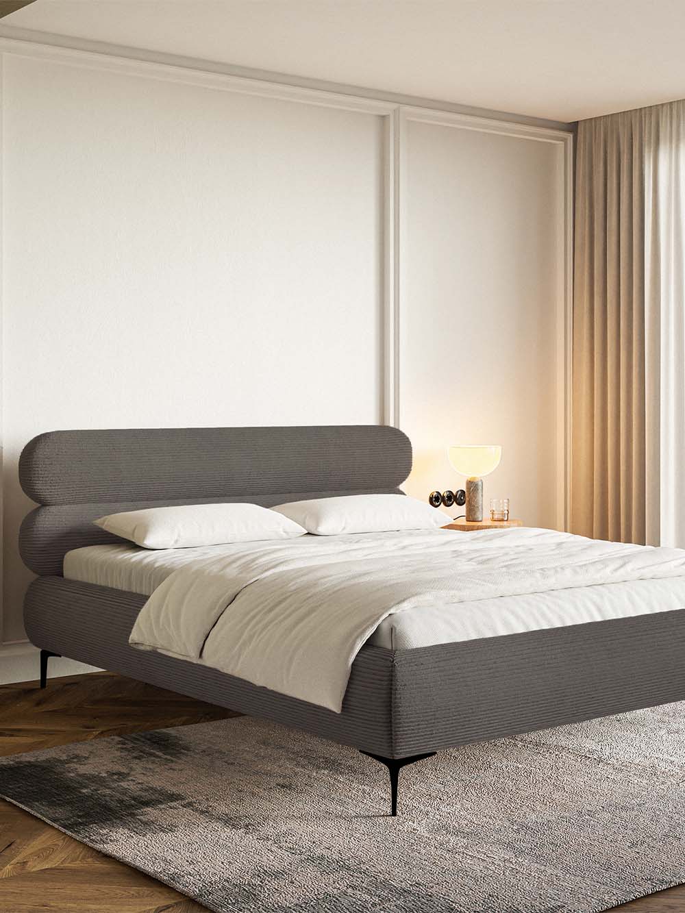 Dvigulė lova Mesa – tai modernaus dizaino baldas, išsiskiriantis elegantišku galvūgaliu, sudarytu iš dviejų horizontalių ovalių formų, suteikiančių interjerui išskirtinumo. Minkštas velvetinis audinys kuria jaukų ir estetiškai harmoningą įvaizdį, o aukštos lovos kojelės suteikia bendram siluetui lengvumo ir elegancijos. Tvirta konstrukcija, paremta metaliniu rėmu, užtikrina stabilumą ir ilgaamžiškumą, o integruota patalynės dėžė leidžia praktiškai išnaudoti miegamojo erdvę ir palaikyti tvarką.