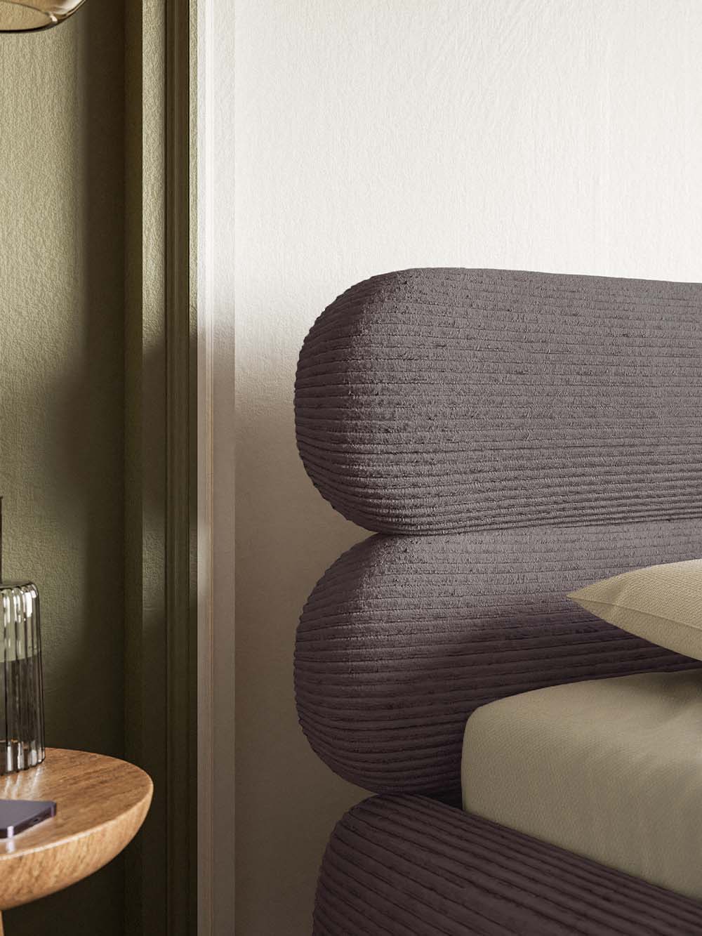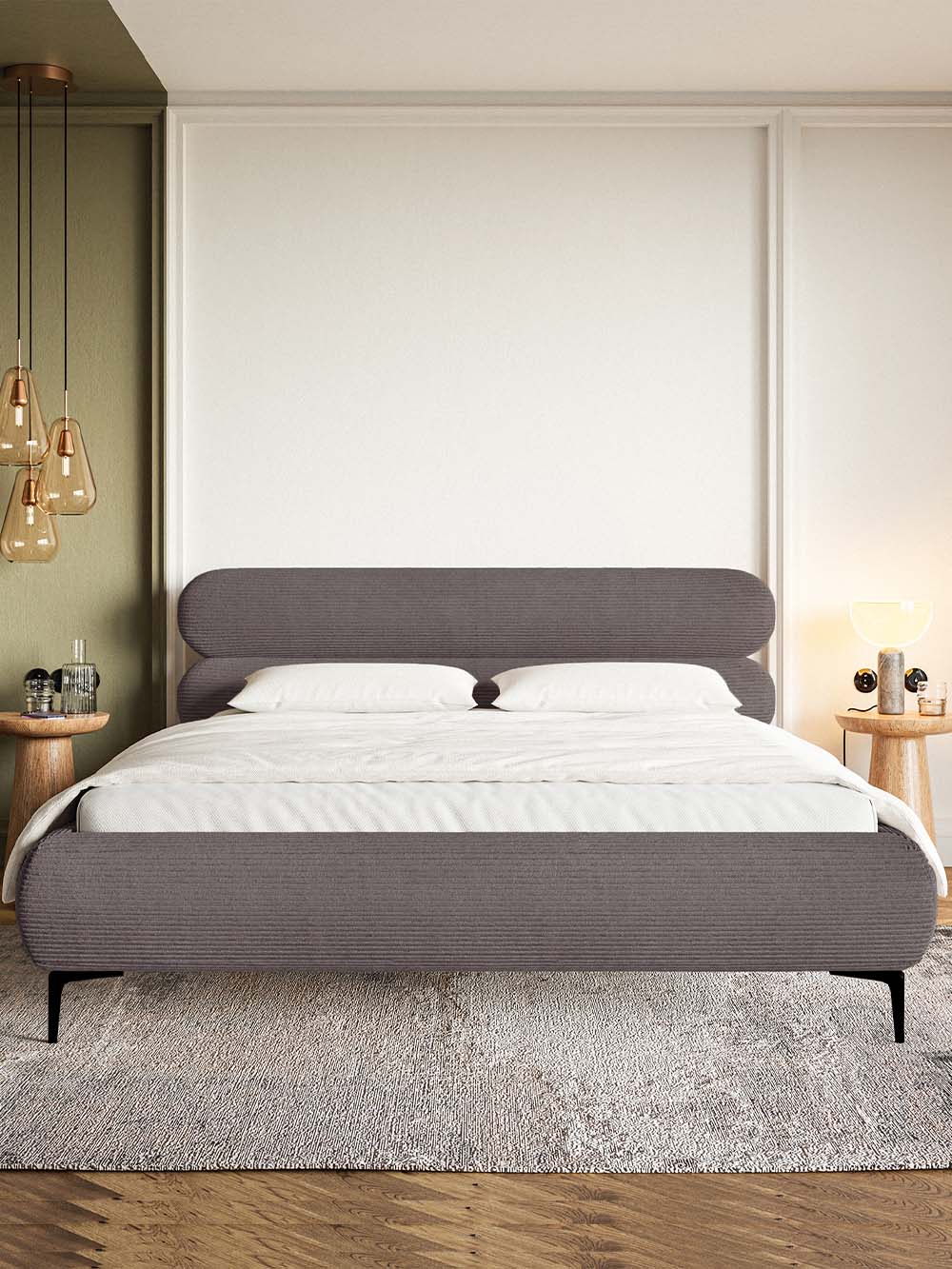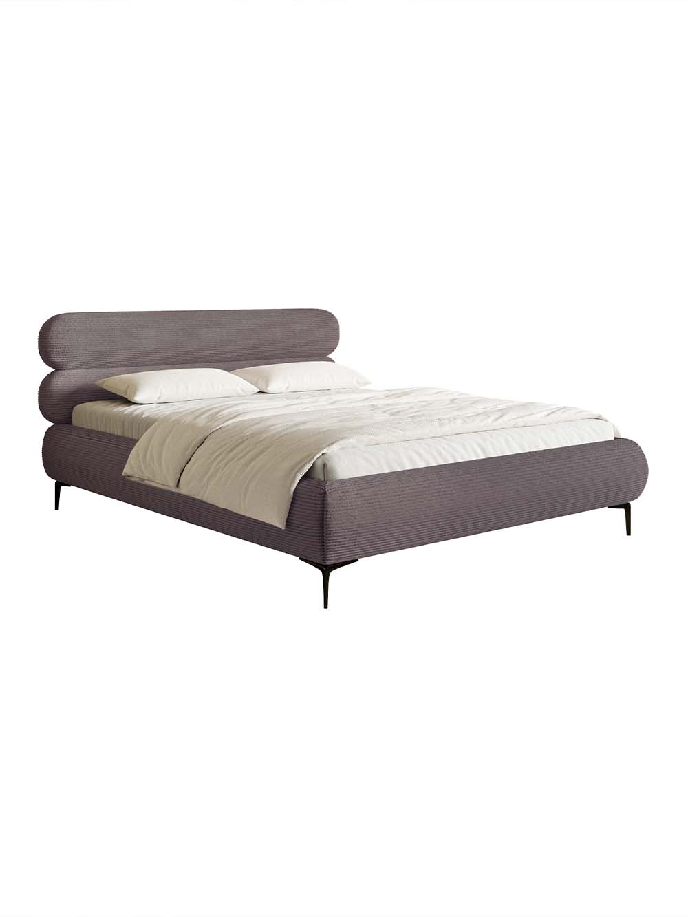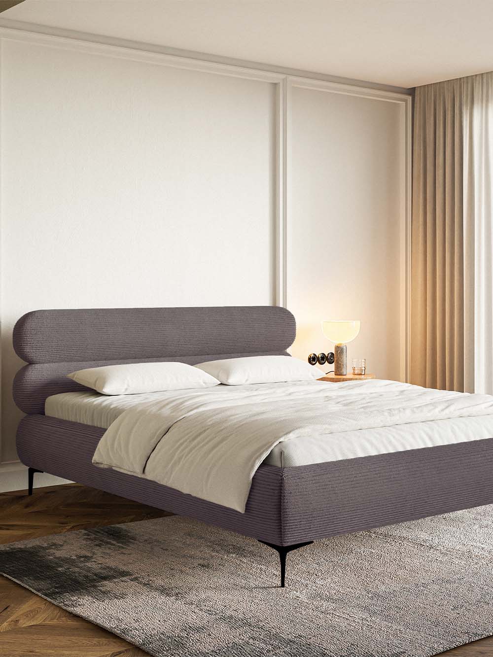 Dvigulė lova Mesa – tai modernaus dizaino baldas, išsiskiriantis elegantišku galvūgaliu, sudarytu iš dviejų horizontalių ovalių formų, suteikiančių interjerui išskirtinumo. Minkštas velvetinis audinys kuria jaukų ir estetiškai harmoningą įvaizdį, o aukštos lovos kojelės suteikia bendram siluetui lengvumo ir elegancijos. Tvirta konstrukcija, paremta metaliniu rėmu, užtikrina stabilumą ir ilgaamžiškumą, o integruota patalynės dėžė leidžia praktiškai išnaudoti miegamojo erdvę ir palaikyti tvarką.