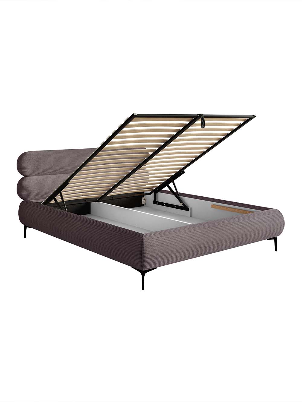 Patalynės dėžė: yra. Atidaroma iš priekio. Yra dvi talpos perskirtos vertikalia pertvara. Pakėlimo mechanizmo tipas - dujinis.