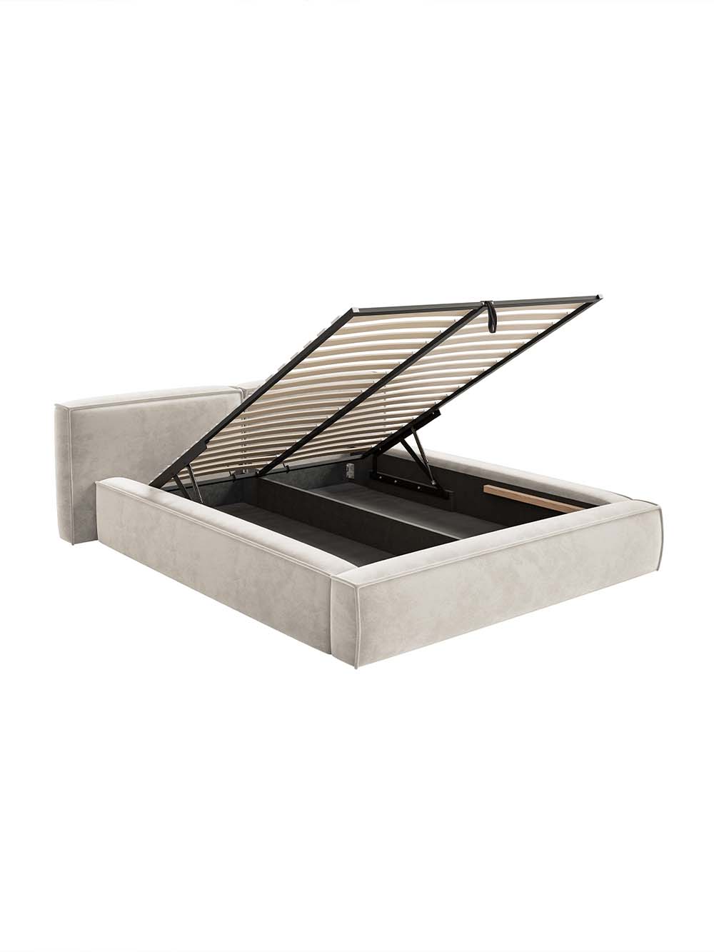 Patalynės dėžės dugnas: Patalynės laikymo dugnas pagamintas iš Wigofil – lengvos, kvėpuojančios ir drėgmės nebijančios medžiagos, kuri neleidžia kauptis dulkėms bei pelėsiui. Jis tvirtinamas Velcro juosta, todėl dugną galima lengvai nuimti, išvalyti ir vėl pritvirtinti, užtikrinant patogią priežiūrą ir higieną.