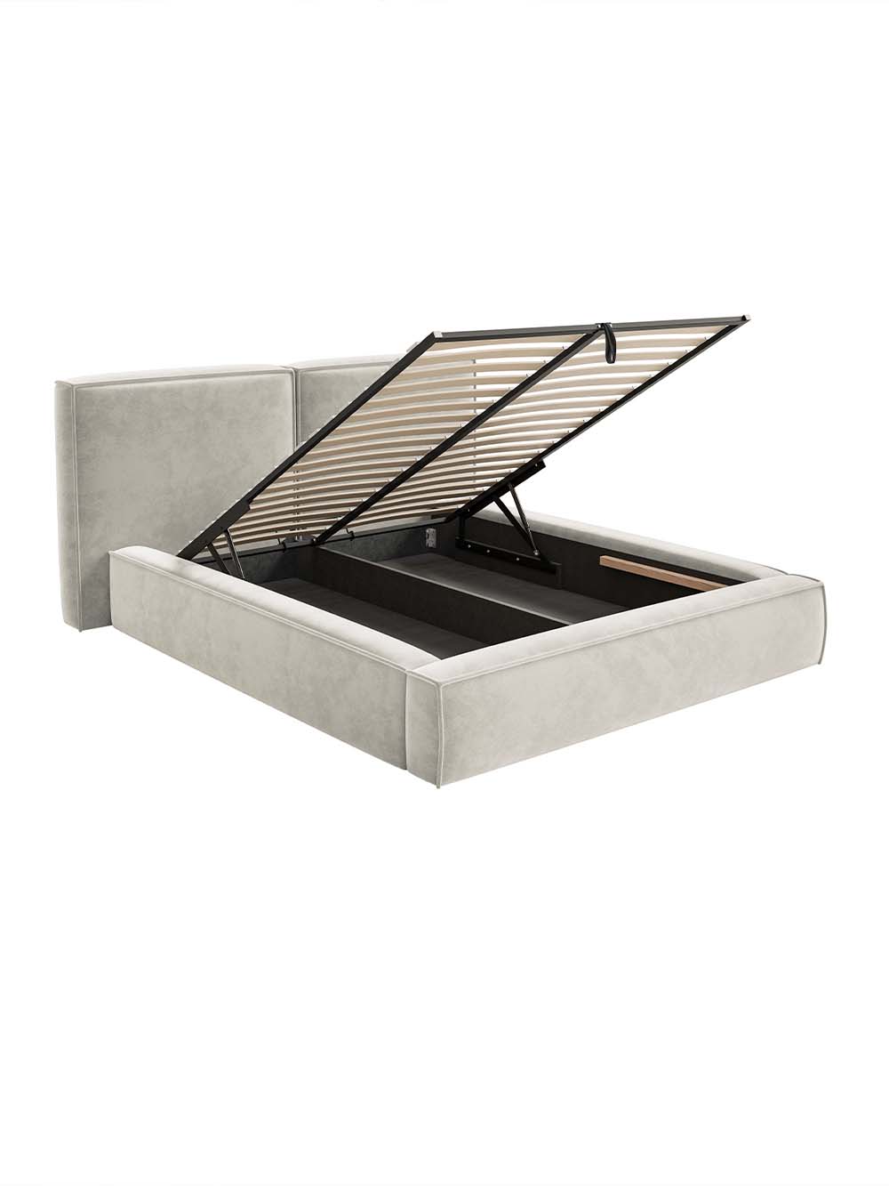 Patalynės dėžė: Yra. Atidaroma iš priekio. Yra dvi talpos perskirtos vertikalia pertvara. Pakėlimo mechanizmo tipas - dujinis.