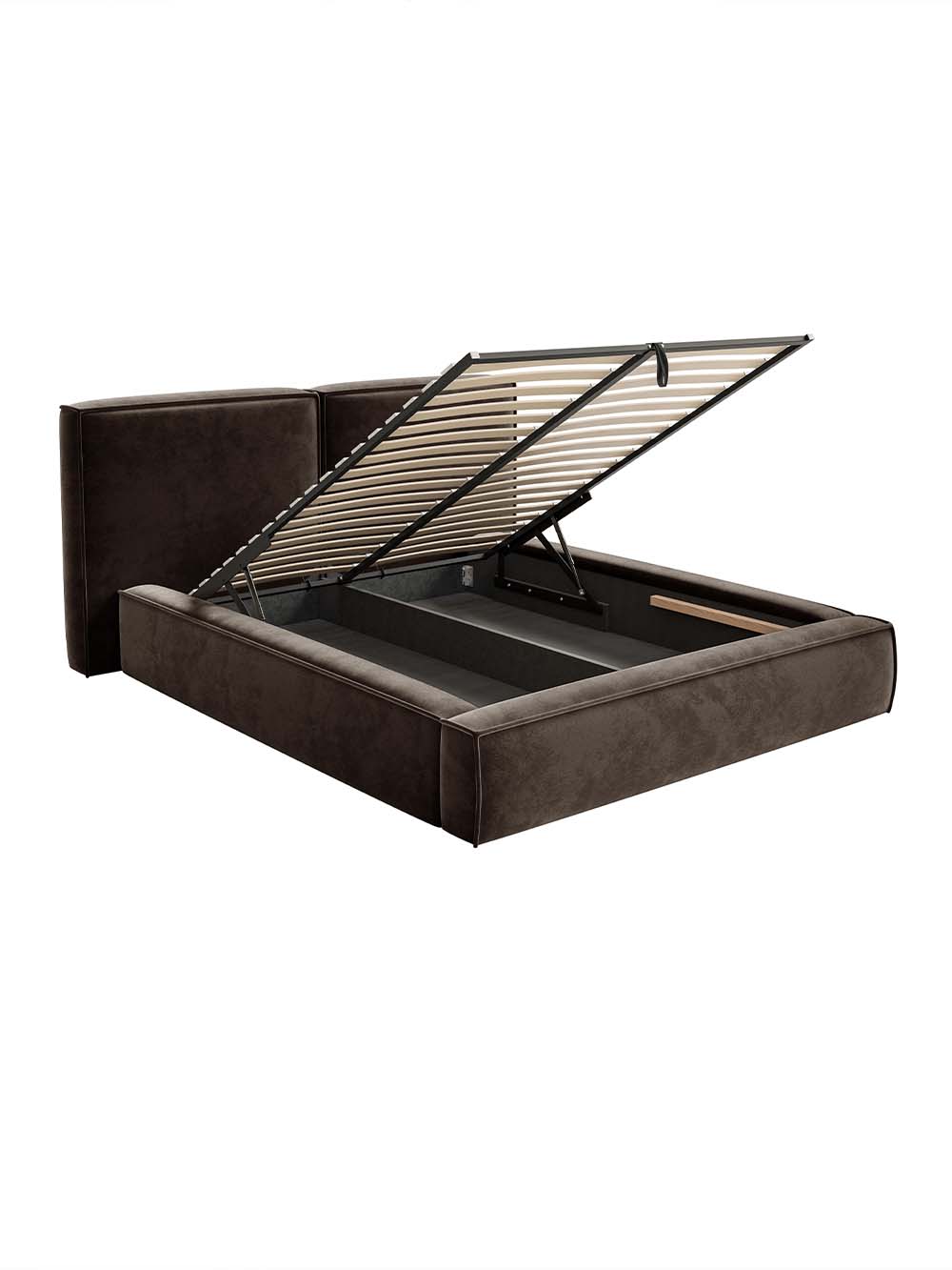 Patalynės dėžė: Yra. Atidaroma iš priekio. Yra dvi talpos perskirtos vertikalia pertvara. Pakėlimo mechanizmo tipas - dujinis.