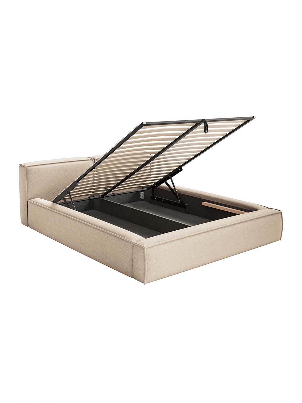 Patalynės dėžė: Yra. Atidaroma iš priekio. Yra dvi talpos perskirtos vertikalia pertvara. Pakėlimo mechanizmo tipas - dujinis.