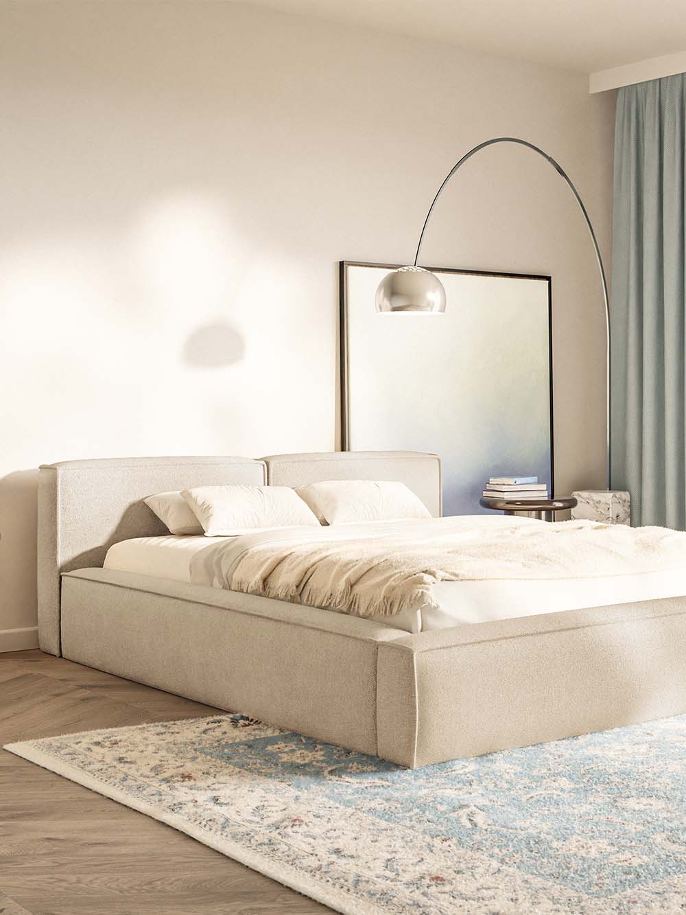 Patalynės dėžės dugnas: Patalynės laikymo dugnas pagamintas iš Wigofil – lengvos, kvėpuojančios ir drėgmės nebijančios medžiagos, kuri neleidžia kauptis dulkėms bei pelėsiui. Jis tvirtinamas Velcro juosta, todėl dugną galima lengvai nuimti, išvalyti ir vėl pritvirtinti, užtikrinant patogią priežiūrą ir higieną.