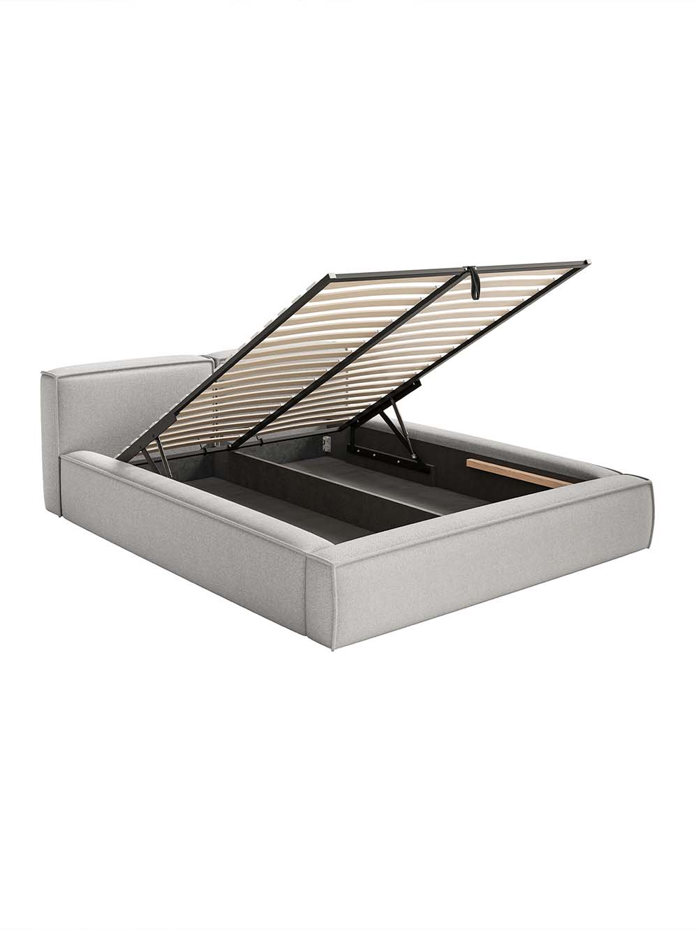 Patalynės dėžė: Yra. Atidaroma iš priekio. Yra dvi talpos perskirtos vertikalia pertvara. Pakėlimo mechanizmo tipas - dujinis.