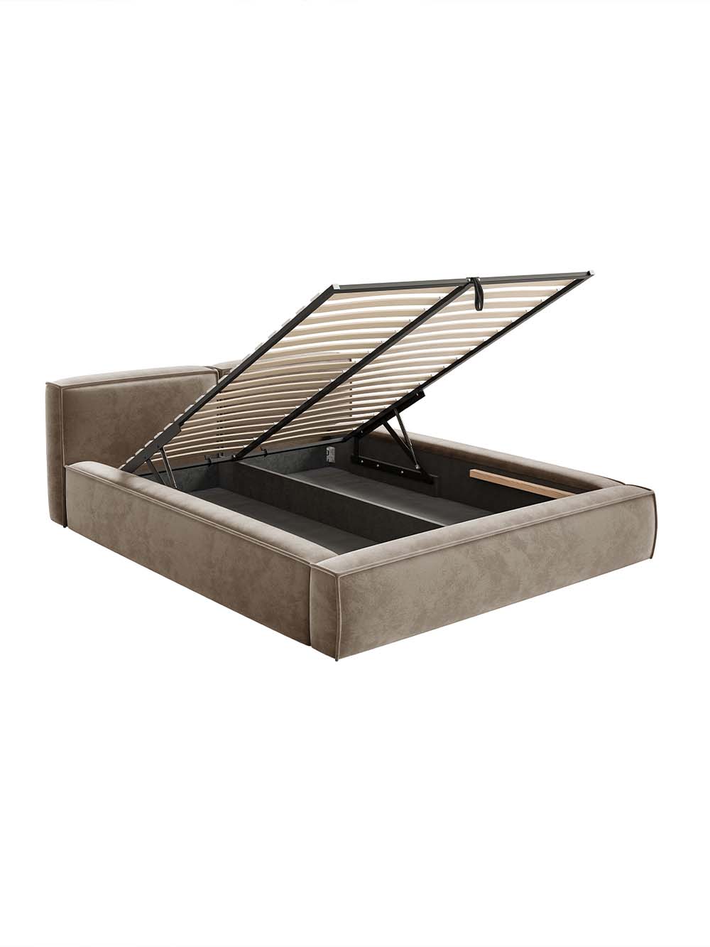 Patalynės dėžė: Yra. Atidaroma iš priekio. Yra dvi talpos perskirtos vertikalia pertvara. Pakėlimo mechanizmo tipas - dujinis.