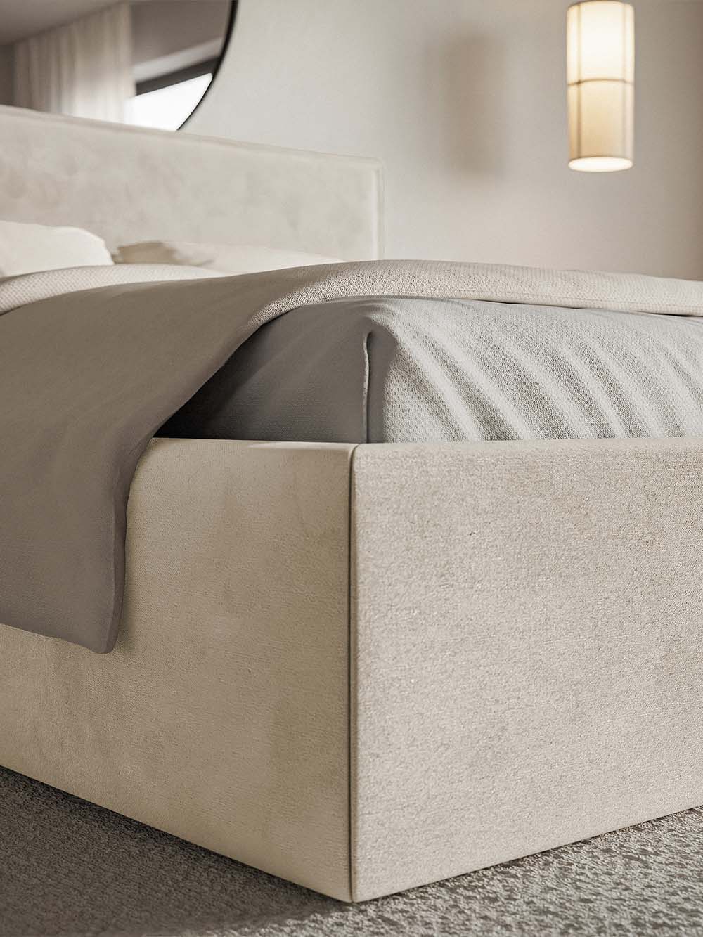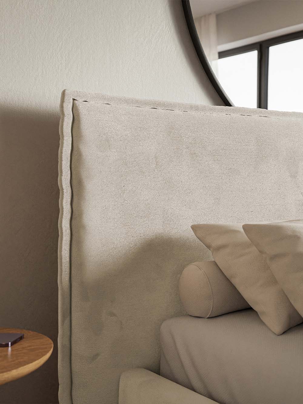 Patalynės dėžė: Yra. Atidaroma iš priekio. Yra dvi talpos perskirtos vertikalia pertvara. Pakėlimo mechanizmo tipas - dujinis.