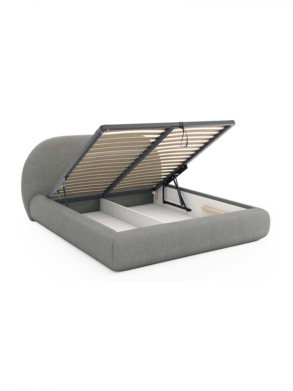 Patalynės dėžė: Yra. Atidaroma iš priekio. Yra dvi talpos perskirtos vertikalia pertvara. Pakėlimo mechanizmo tipas - dujinis.