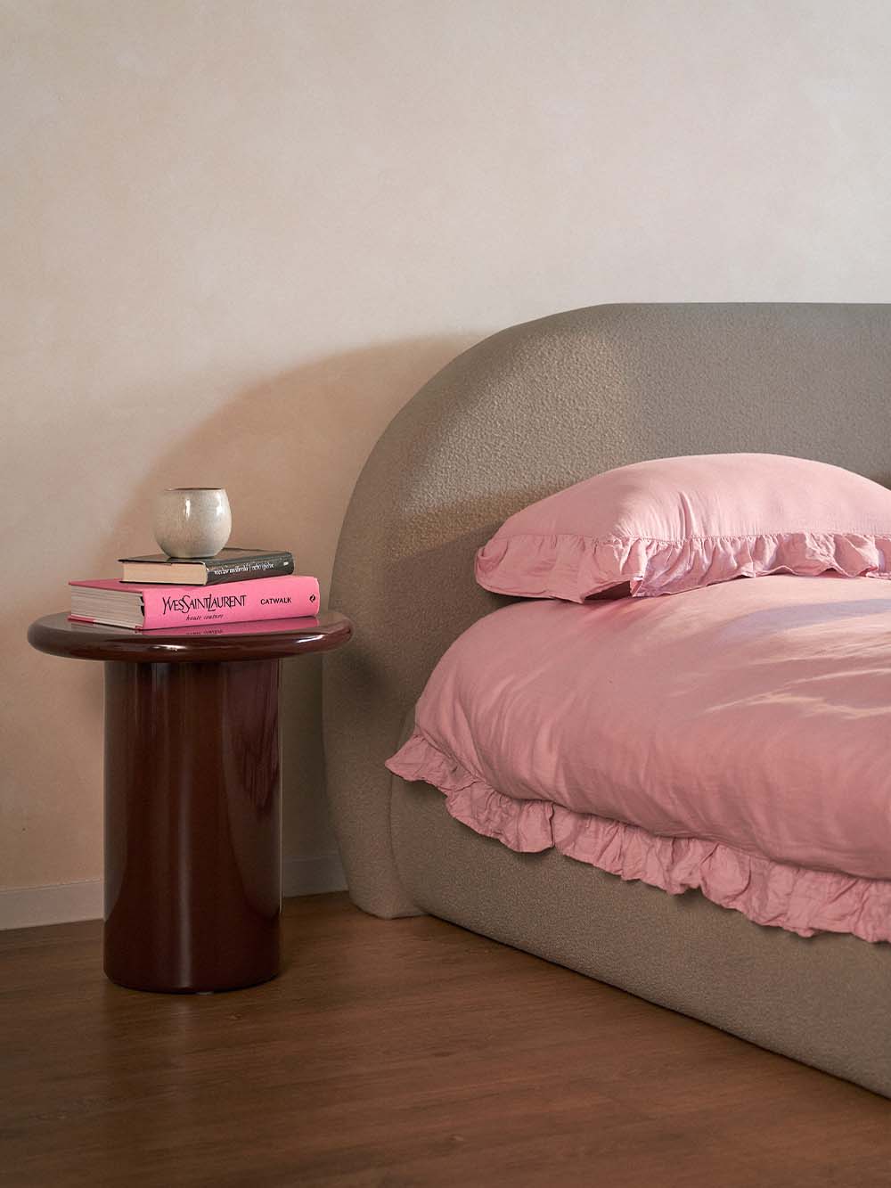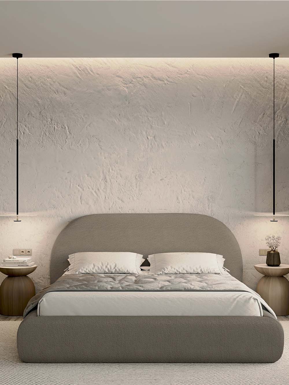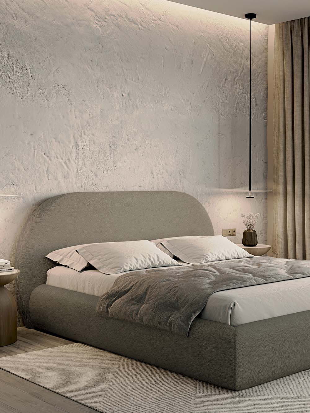 Dvigulė lova Nubo – tai modernaus dizaino baldas, išsiskiriantis švelniomis, apvaliomis formomis ir harmoningomis proporcijomis. Bouclé tipo audinys suteikia lovai jaukų, vizualiai švelnų charakterį, o ypatingai storas ir minkštas galvūgalis užtikrina patogią atramą tiek miegant, tiek vakare ilsintis su knyga. Tvirta konstrukcija, paremta metaliniu rėmu, garantuoja stabilumą ir ilgaamžiškumą, o integruota patalynės dėžė leidžia praktiškai išnaudoti miegamojo erdvę.