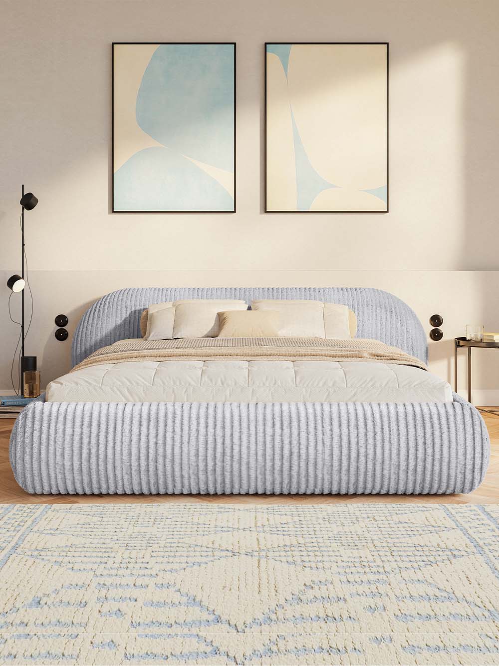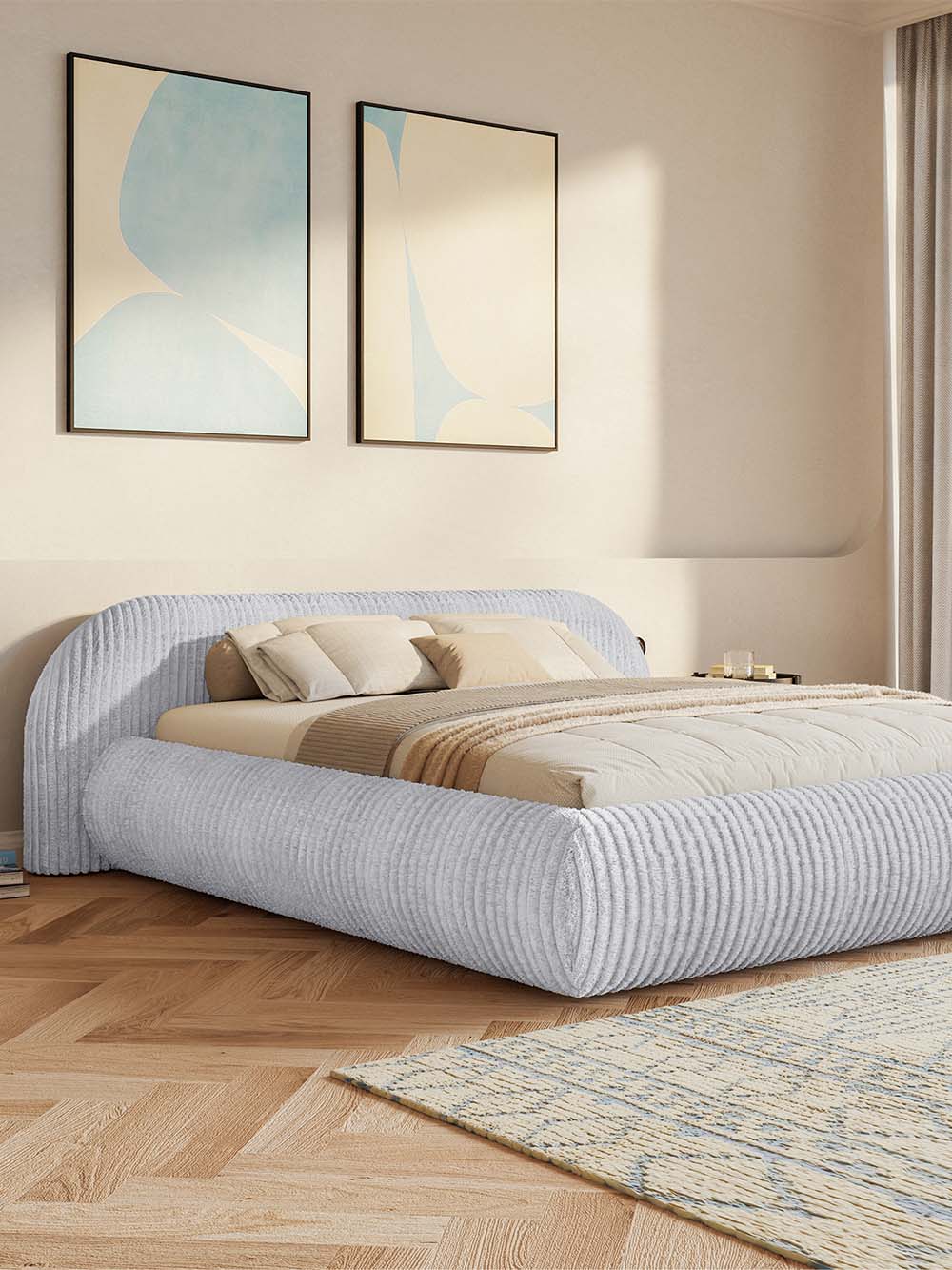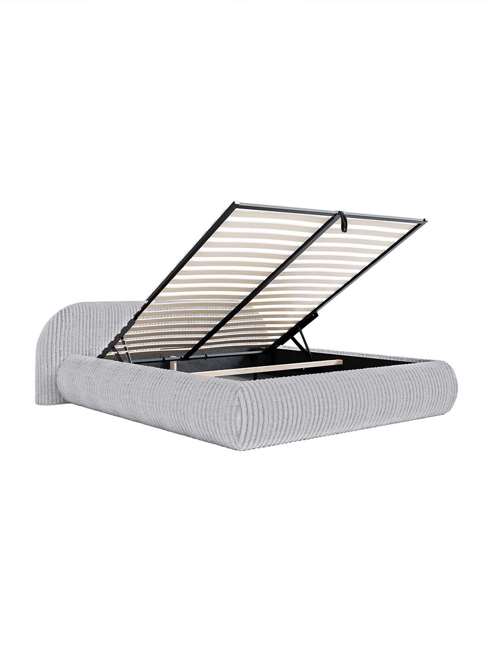Dvigulė lova Numa – modernios estetikos baldas su minkštomis linijomis ir minimalistine forma, lengvai derantis prie šiuolaikinių interjerų. Minkštas velvetinis audinys, malonus liesti, suteikia lovai jaukumo ir subtilios prabangos pojūtį. Žemesnis galvūgalis išlaiko estetinę pusiausvyrą ir patogumą, o tvirta konstrukcija su metaliniu rėmu užtikrina stabilumą. Integruota patalynės dėžė su dujiniu pakėlimo mechanizmu leidžia praktiškai išnaudoti miegamojo erdvę.