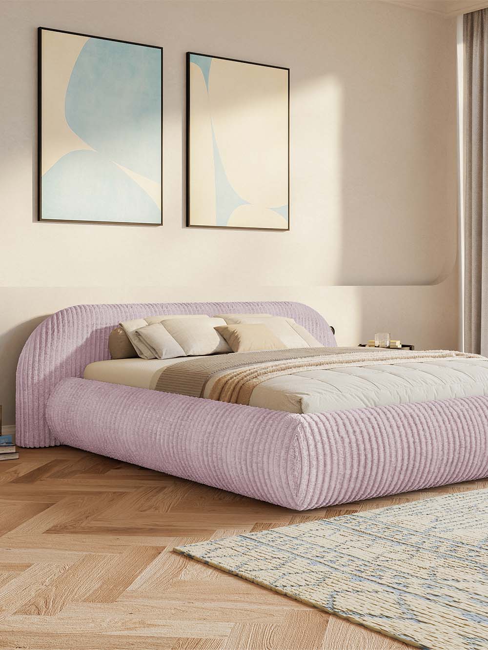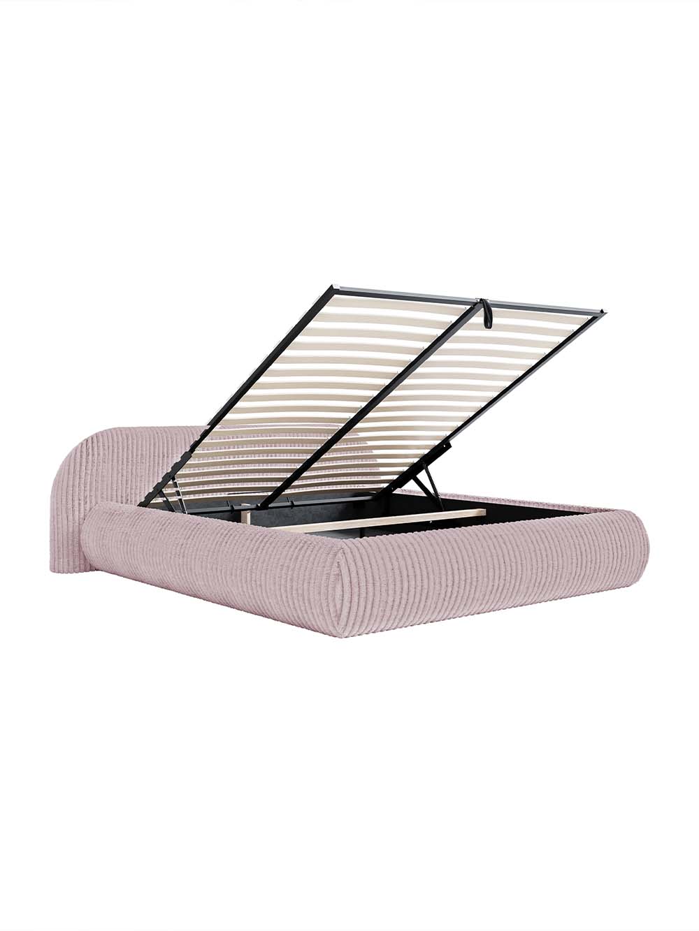 Dvigulė lova Numa – modernios estetikos baldas su minkštomis linijomis ir minimalistine forma, lengvai derantis prie šiuolaikinių interjerų. Minkštas velvetinis audinys, malonus liesti, suteikia lovai jaukumo ir subtilios prabangos pojūtį. Žemesnis galvūgalis išlaiko estetinę pusiausvyrą ir patogumą, o tvirta konstrukcija su metaliniu rėmu užtikrina stabilumą. Integruota patalynės dėžė su dujiniu pakėlimo mechanizmu leidžia praktiškai išnaudoti miegamojo erdvę.
