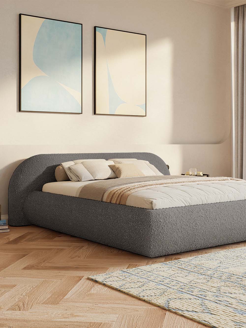 Dvigulė Lova Numa, pilko smėlio, boucle Price range: 880,00 € through 920,00 €