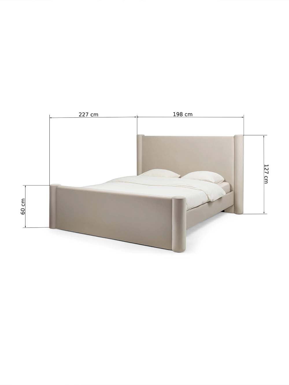 Bendri lovos matmenys: plotis x ilgis x aukštis: 198 x 227 x 127 cm.