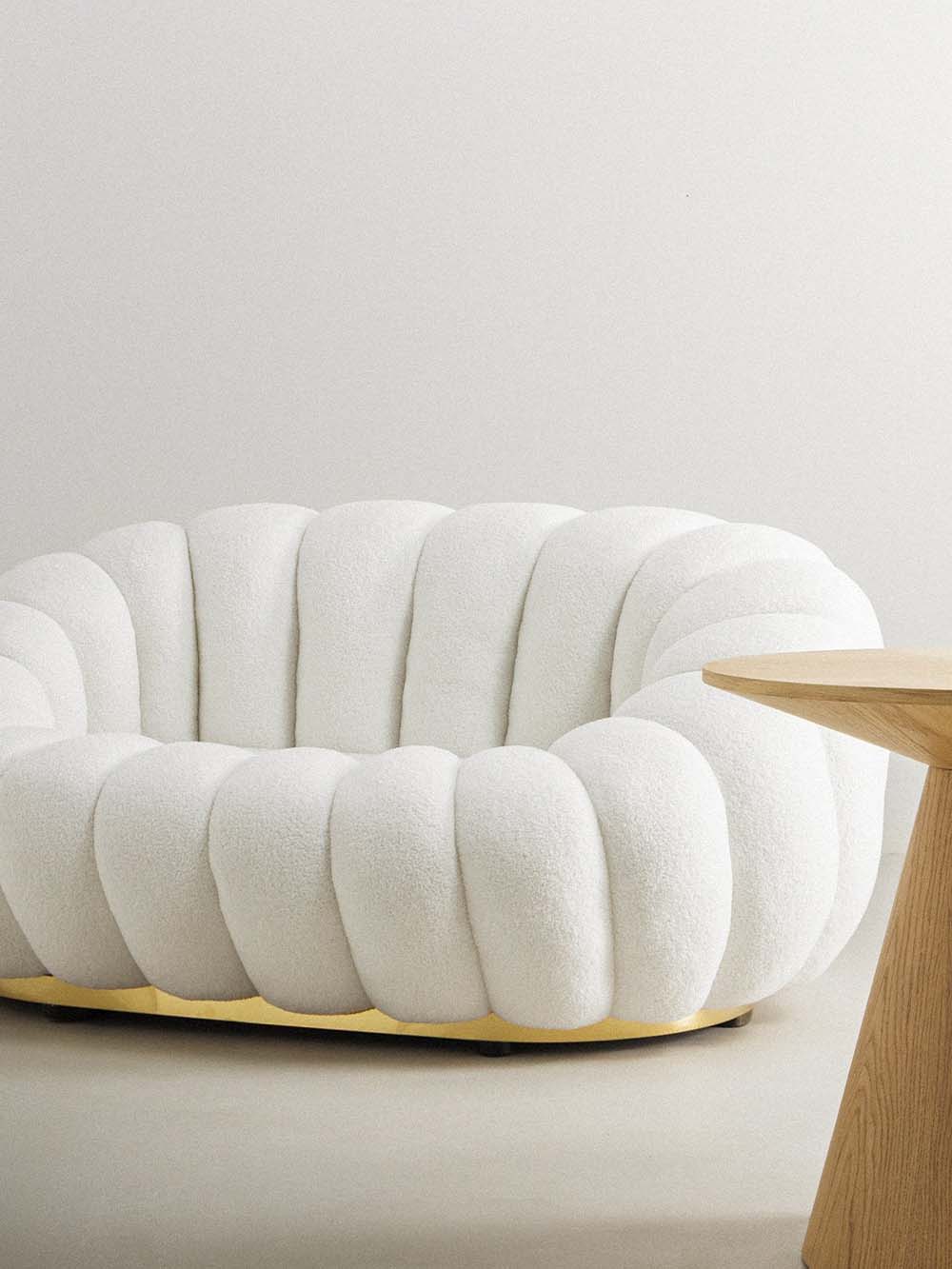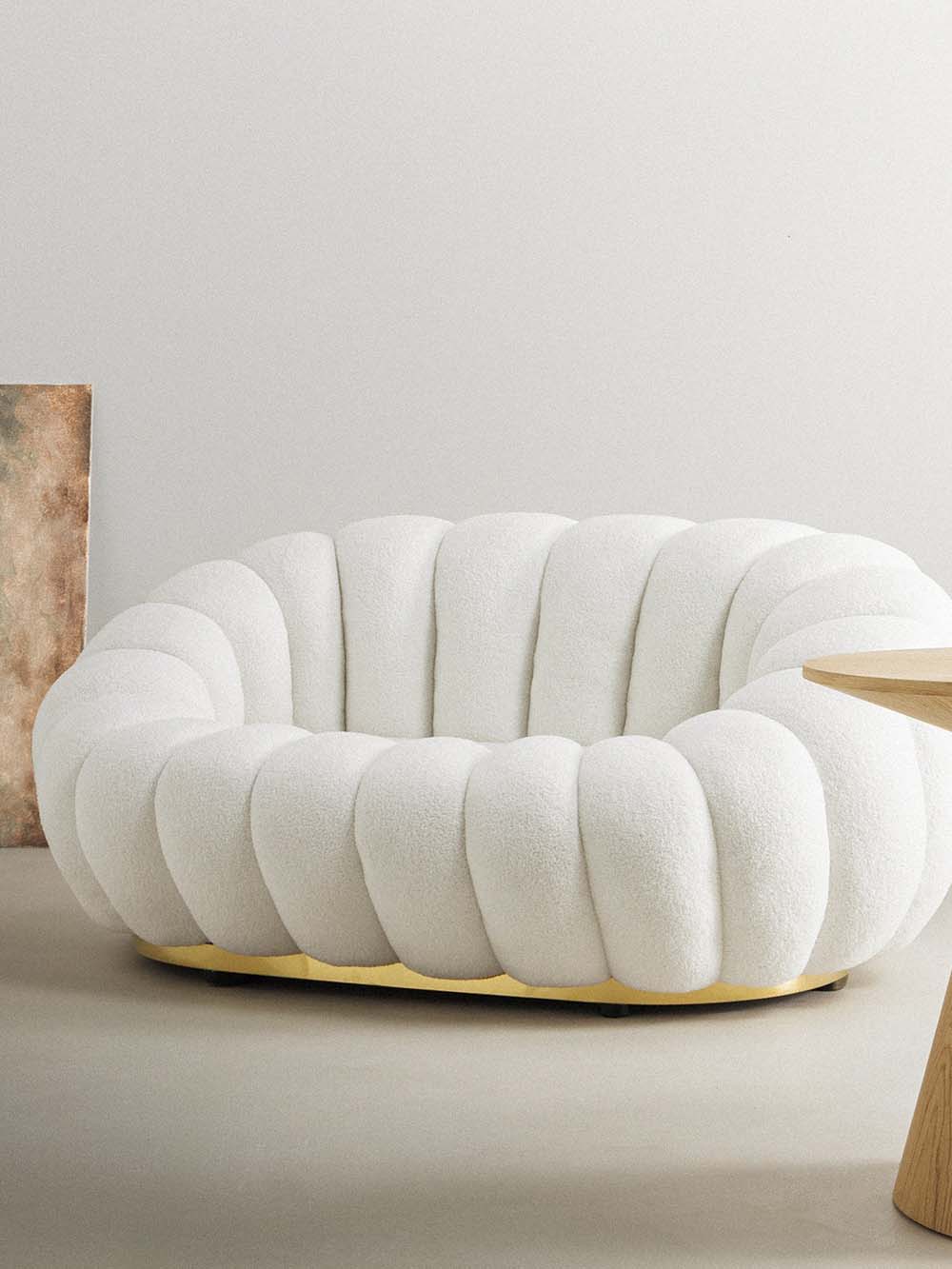 Sėdynės užpildas: porolonas (putų poliuretanas) kurio tankis (28 kg/m³), žąsų pūkai, poliesterio pluoštas.