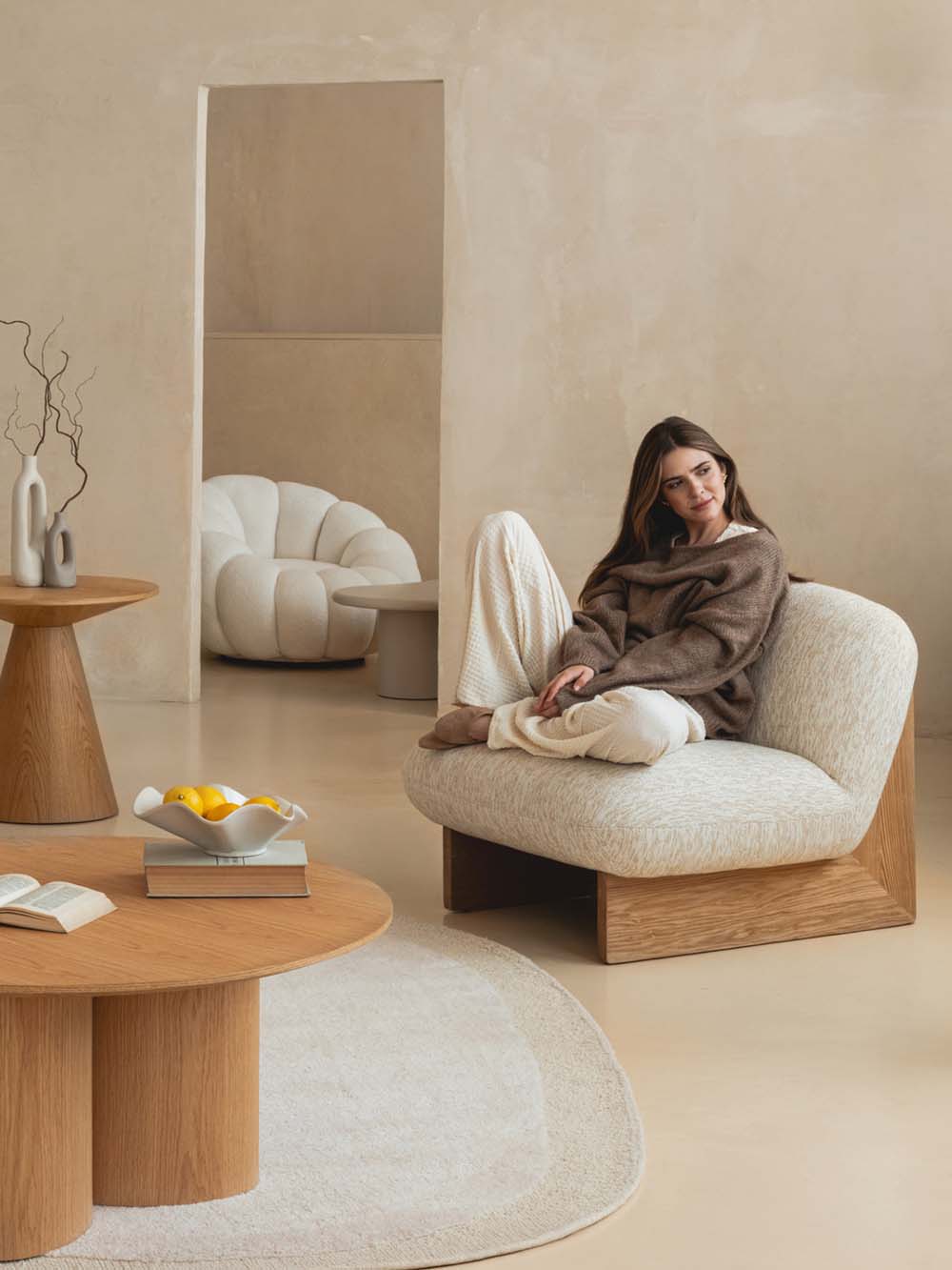 Fotelis Bajo – tai modernumo ir komforto derinys, kuris sužavi savo subtiliu dizainu. Minimalistinės linijos ir apvalios formos suteikia interjerui harmonijos bei ramybės, o švelnus smėlio spalvos audinys yra ne tik estetiškas, bet ir malonus liesti.