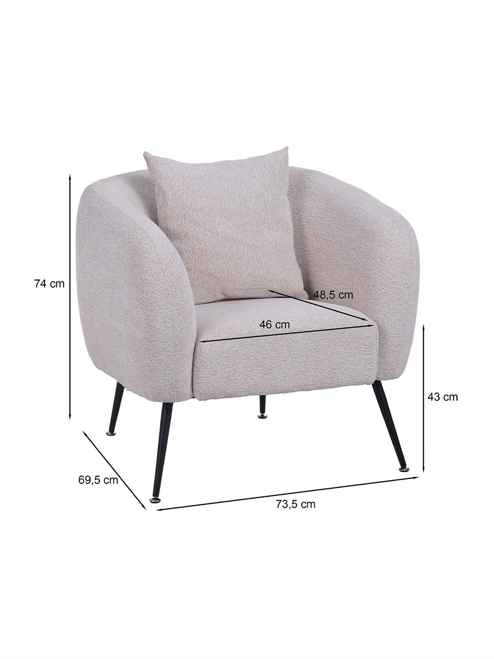 Išoriniai baldo matmenys CM: plotis / gylis / aukštis: 73,5 / 69,5 / 74.