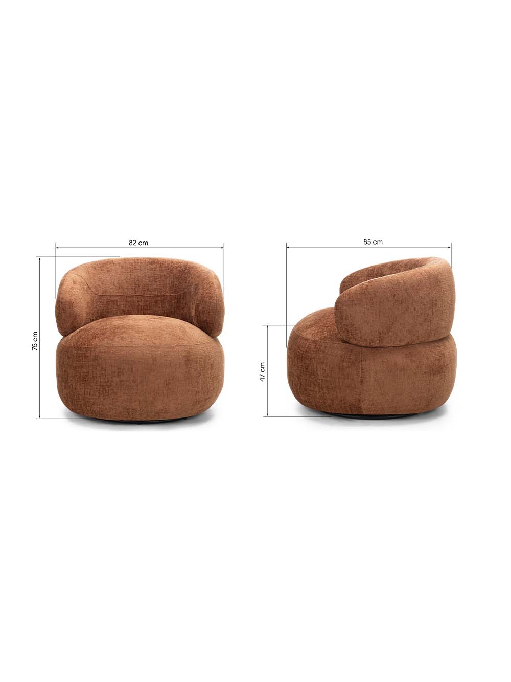 Išoriniai baldo matmenys: plotis / gylis / aukštis, cm: 82 / 85 / 75.