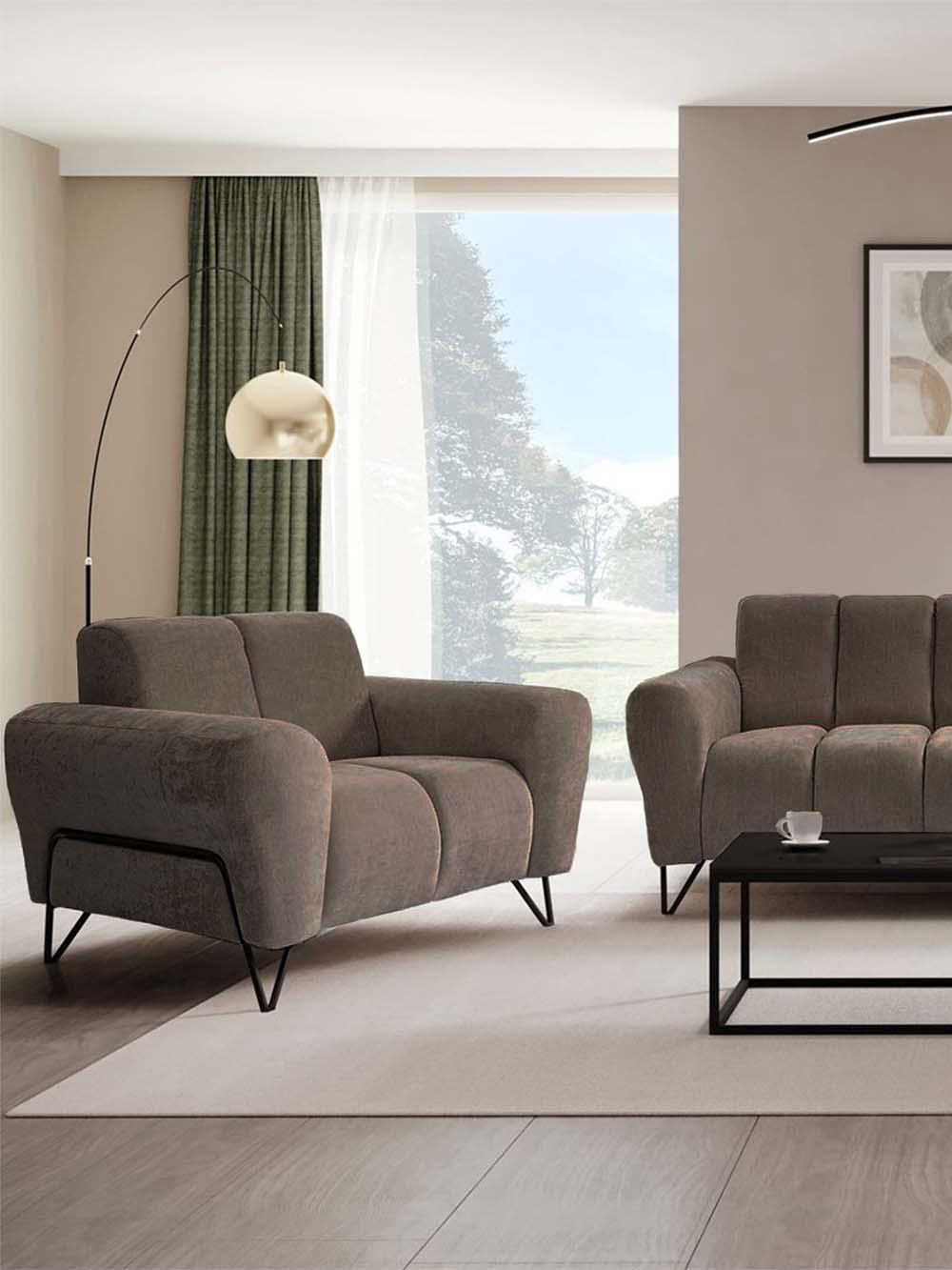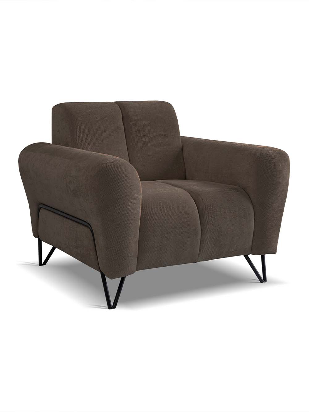 Fotelis Velore – modernios estetikos baldas su minkštomis, apvalintomis formomis ir subtiliai išraiškingu siluetu. Rudos spalvos šenilinis audinys interjerui suteikia sodraus charakterio ir vizualinio jaukumo, o juodos spalvos metalinis kojų rėmas pabrėžia šiuolaikišką charakterį. Platus, komfortiškai suformuotas atlošas ir ergonomiška sėdimoji dalis užtikrina išskirtinį komfortą – puikiai tinka ramiam poilsiui, knygos skaitymui ar jaukiems vakarams namuose.