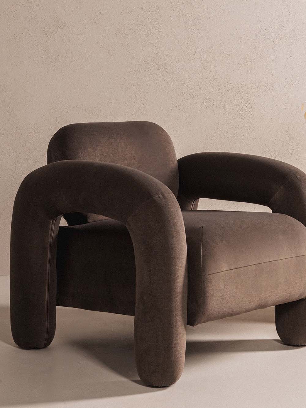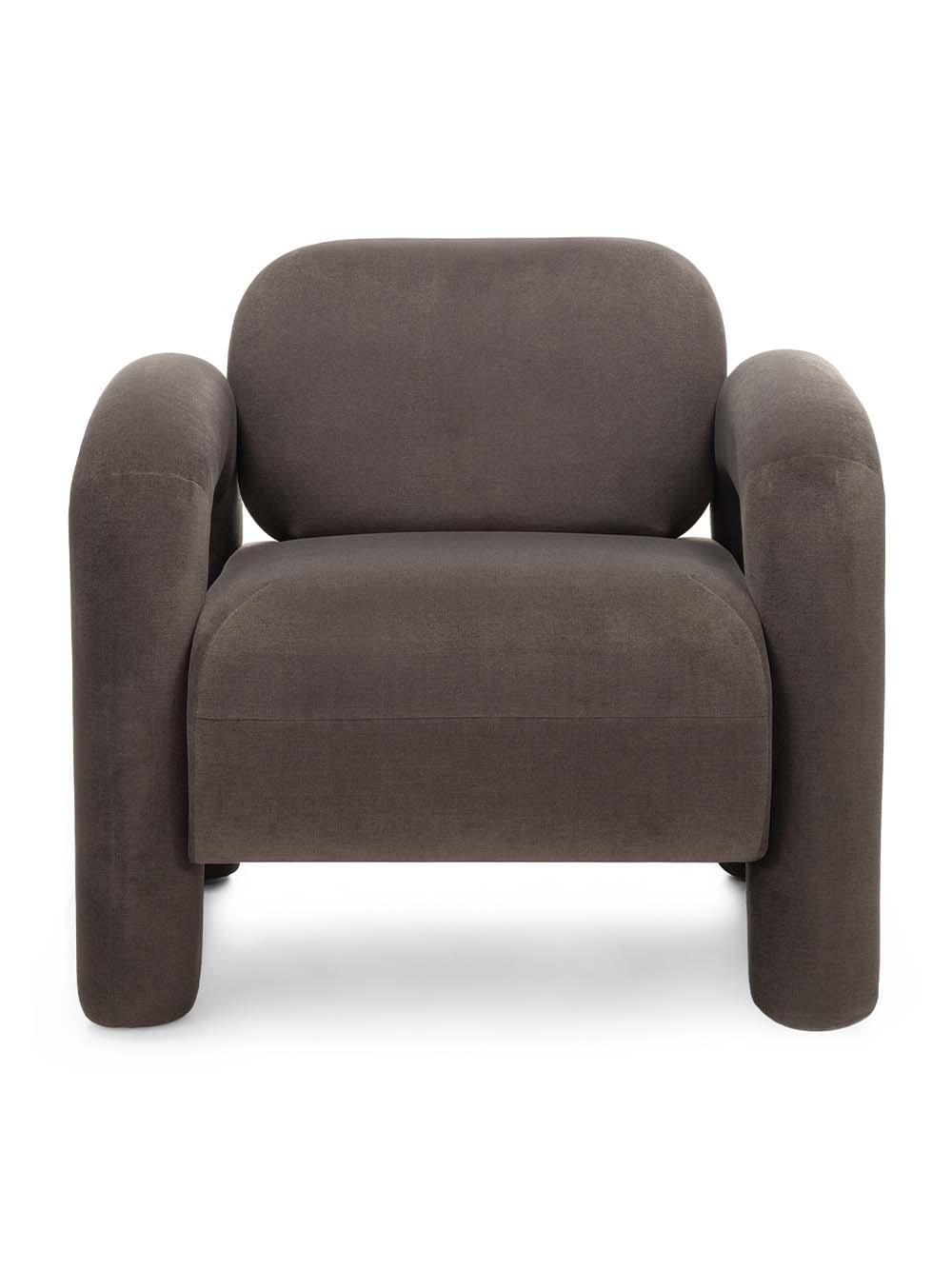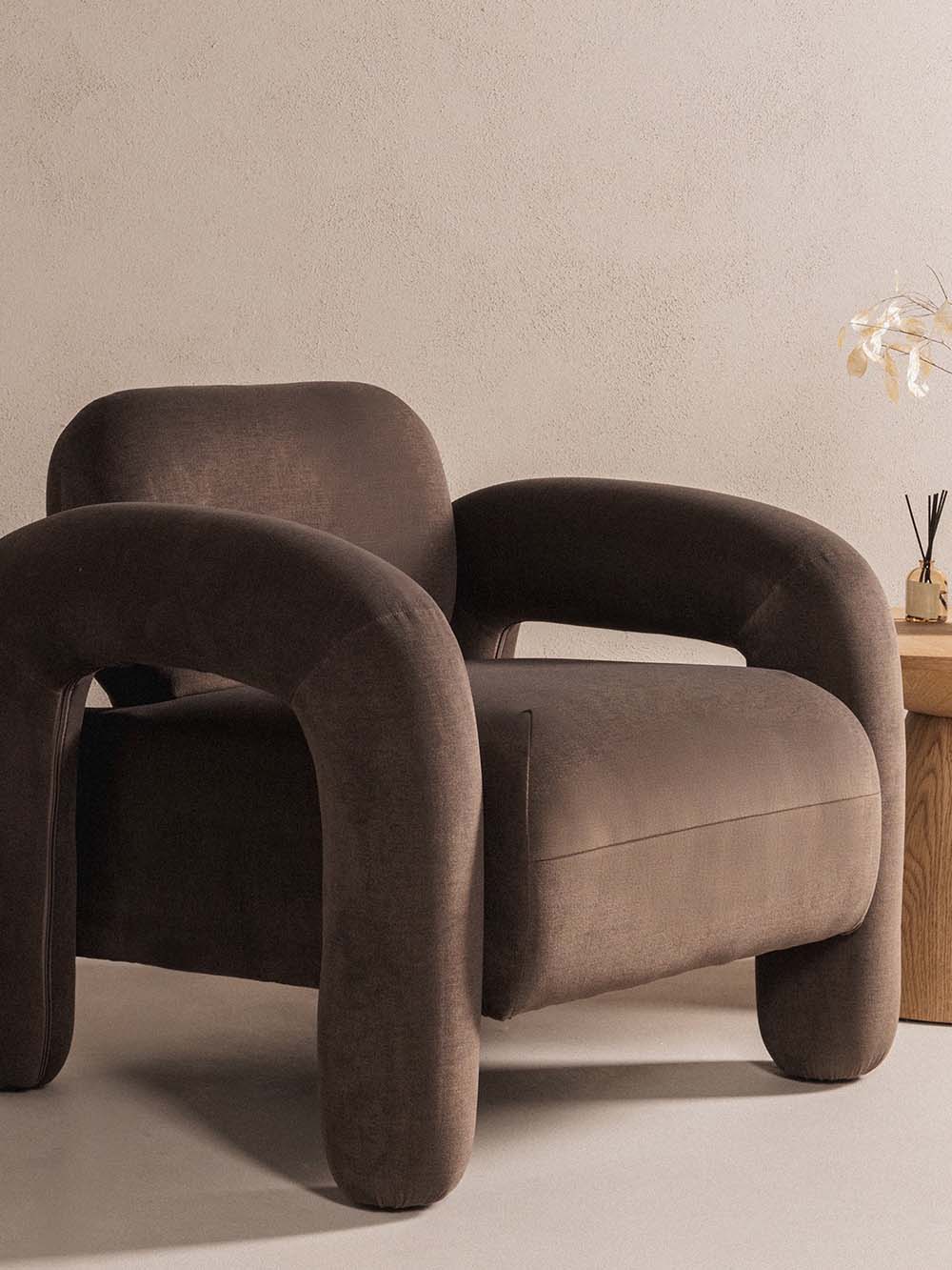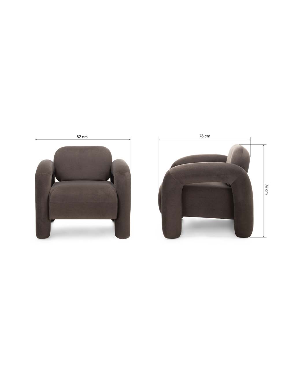 Fotelis Vicario – šiuolaikinio dizaino ir komforto derinys. Tai baldas, kuris puikiai tiks tiek moderniame, tiek klasikiniame interjere. Fotelis aptrauktas minkštu, rudos spalvos veliūro audiniu, suteikiančiu jaukumo ir elegancijos. Masyvūs, užapvalinti porankiai kartu su minkšta sėdyne ir ergonomiška atkalte užtikrina patogų poilsį, o apvalios formos pabrėžia išskirtinį charakterį.