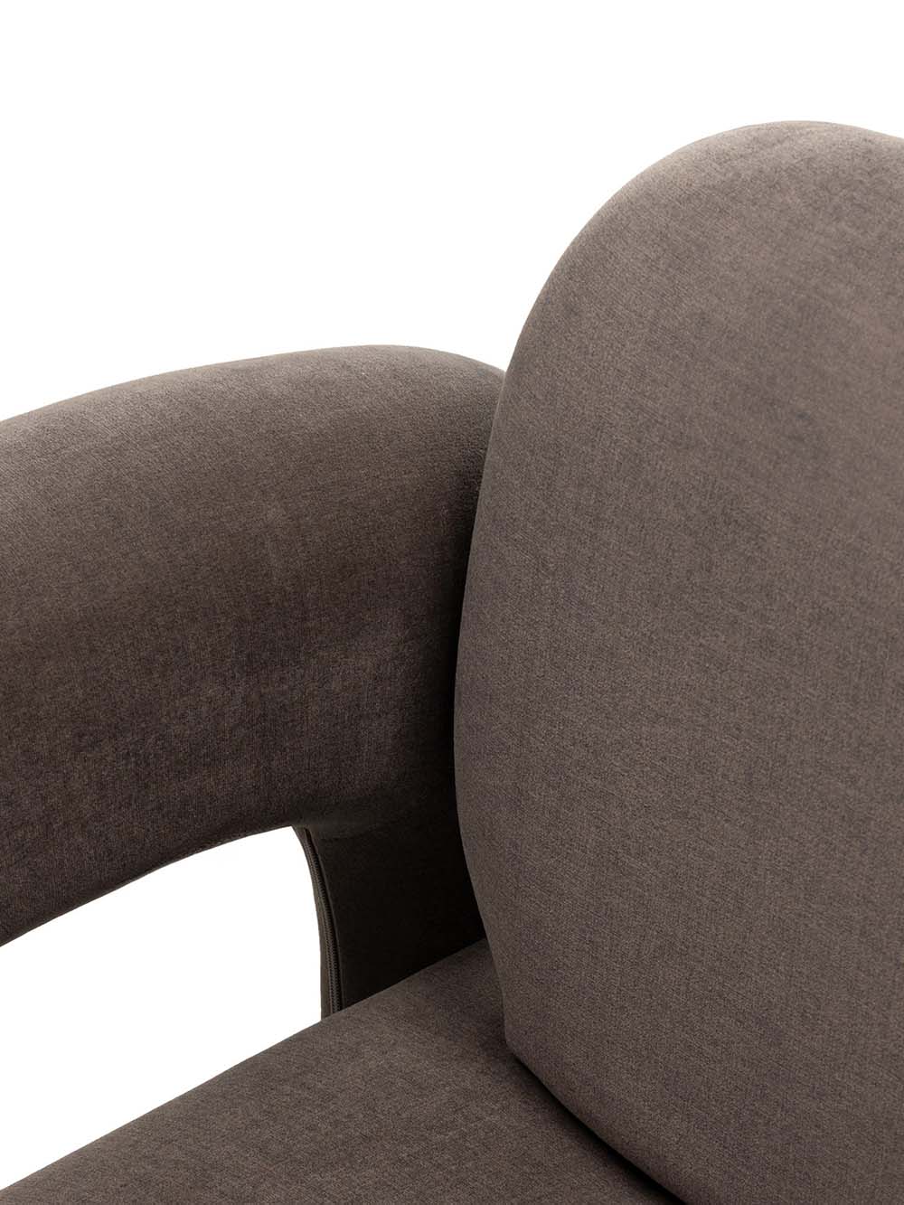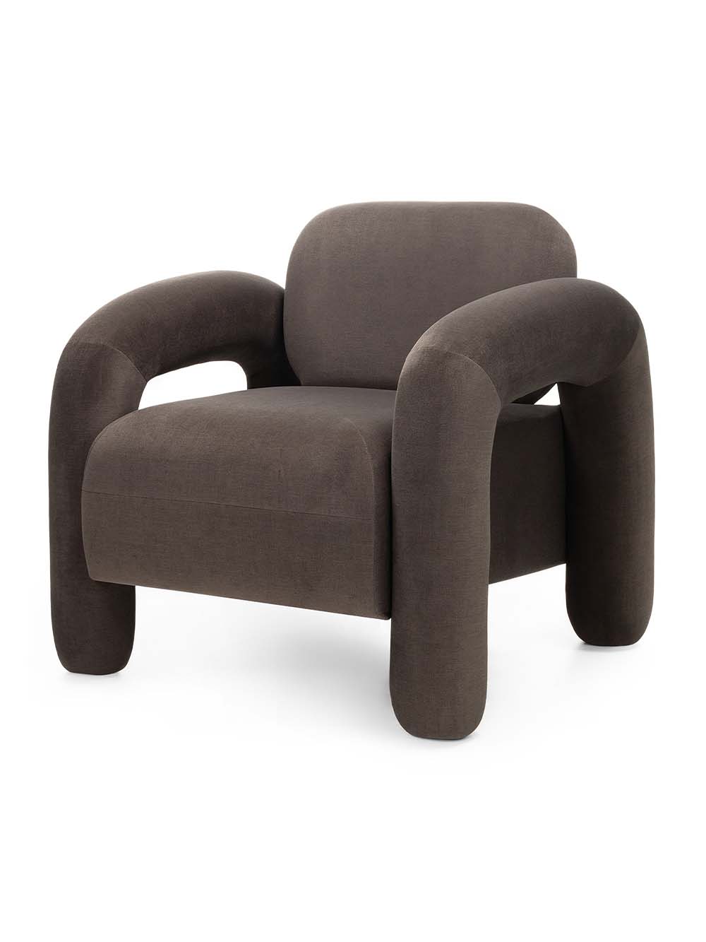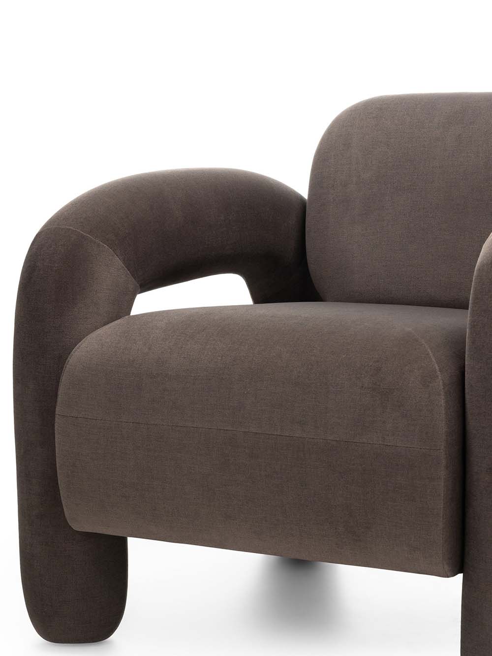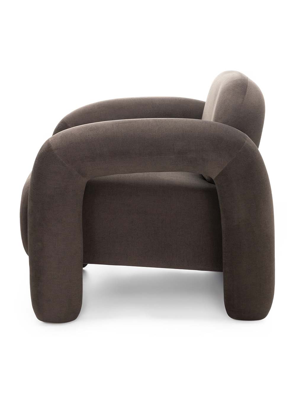 Fotelis Vicario – šiuolaikinio dizaino ir komforto derinys. Tai baldas, kuris puikiai tiks tiek moderniame, tiek klasikiniame interjere. Fotelis aptrauktas minkštu, rudos spalvos veliūro audiniu, suteikiančiu jaukumo ir elegancijos. Masyvūs, užapvalinti porankiai kartu su minkšta sėdyne ir ergonomiška atkalte užtikrina patogų poilsį, o apvalios formos pabrėžia išskirtinį charakterį.