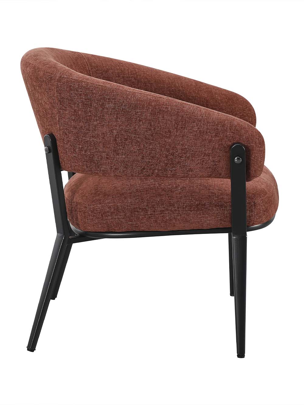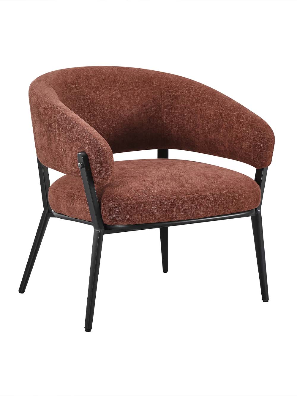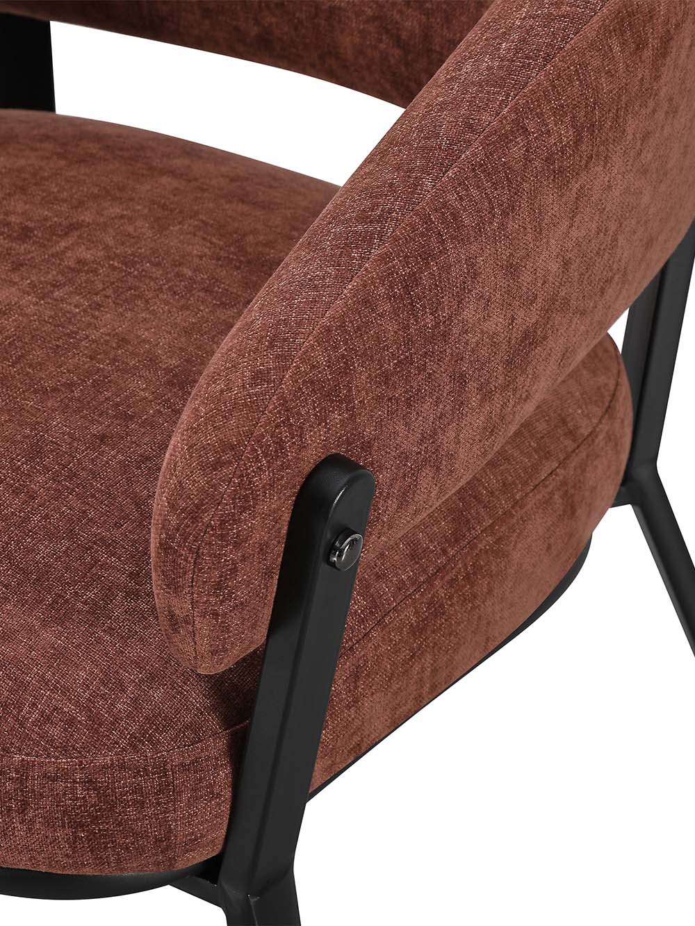 Fotelis Zairo pasižymi moderniu, švelnių linijų dizainu, kuris interjerui suteikia jaukumo ir vizualinio lengvumo. Rudos spalvos audinys kuria šiltą, elegantišką įvaizdį, o juodos spalvos metalinis kojų rėmas suteikia baldui stabilumo ir šiuolaikiško charakterio. Apgaubianti nugarėlė ir patogi sėdimoji dalis užtikrina komfortą kasdieniam naudojimui.