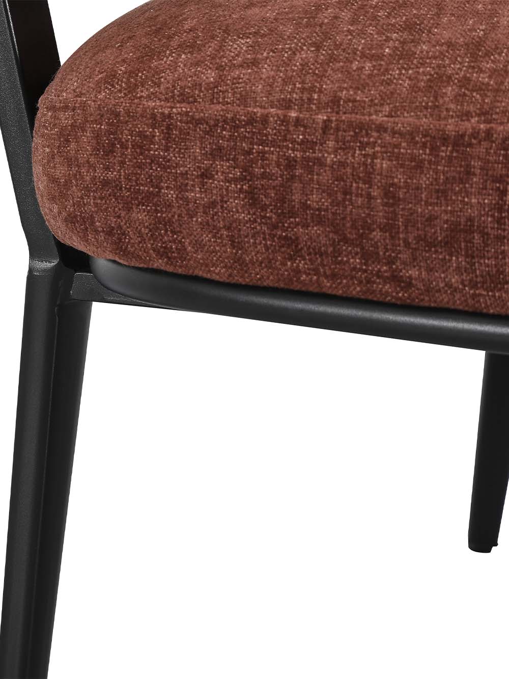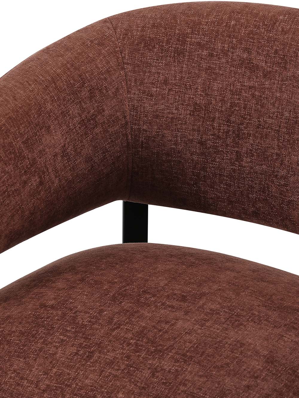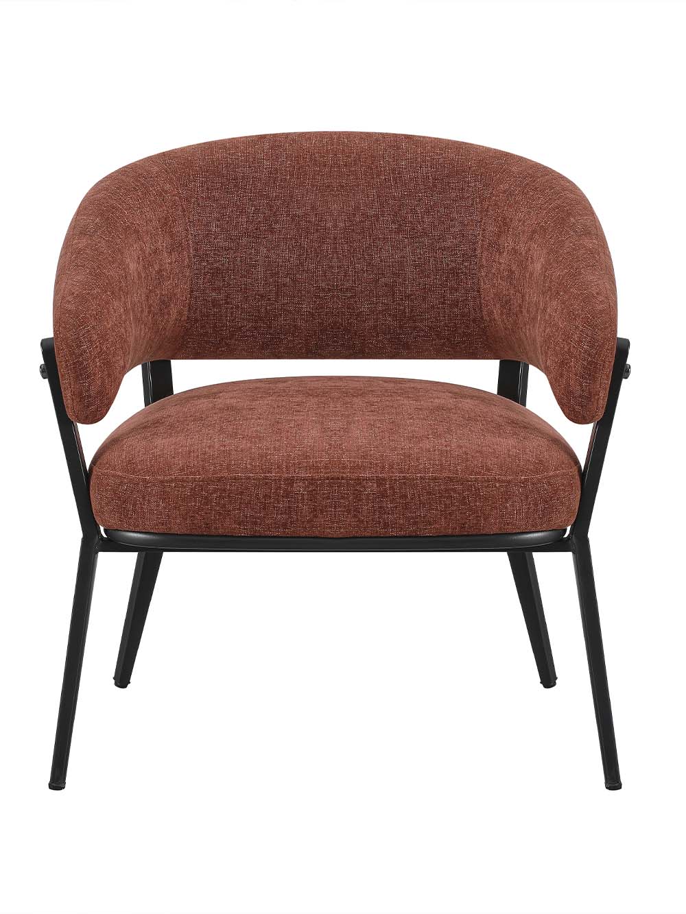 Fotelis Zairo pasižymi moderniu, švelnių linijų dizainu, kuris interjerui suteikia jaukumo ir vizualinio lengvumo. Rudos spalvos audinys kuria šiltą, elegantišką įvaizdį, o juodos spalvos metalinis kojų rėmas suteikia baldui stabilumo ir šiuolaikiško charakterio. Apgaubianti nugarėlė ir patogi sėdimoji dalis užtikrina komfortą kasdieniam naudojimui.