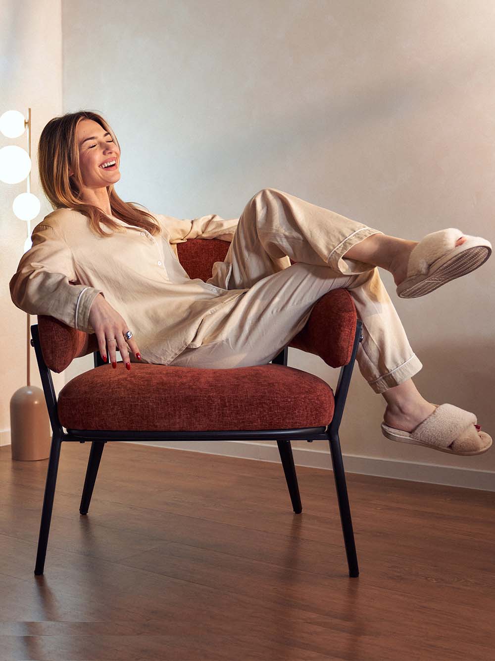 Apie audinį: Liberty – tai švelnus šenilinis audinys, pasižymintis subtilią lino struktūrą primenančia tekstūra ir jaukiu melanžo atspalvių. Audinys išsiskiria atsparumu dėvėjimuisi, blūkinui bei trinčiai, nesivelia ir išlaiko estetinę išvaizdą net ir po ilgo naudojimo.