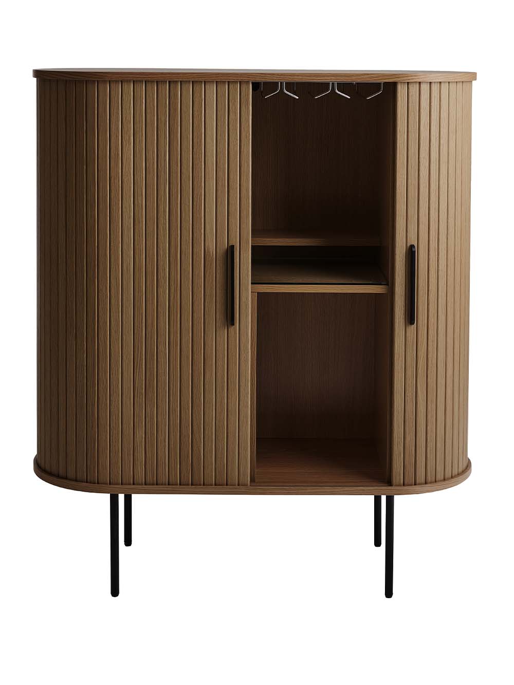 Korpuso medžiaga: natūraliu ąžuolo lukštu faneruota MDF plokštė.