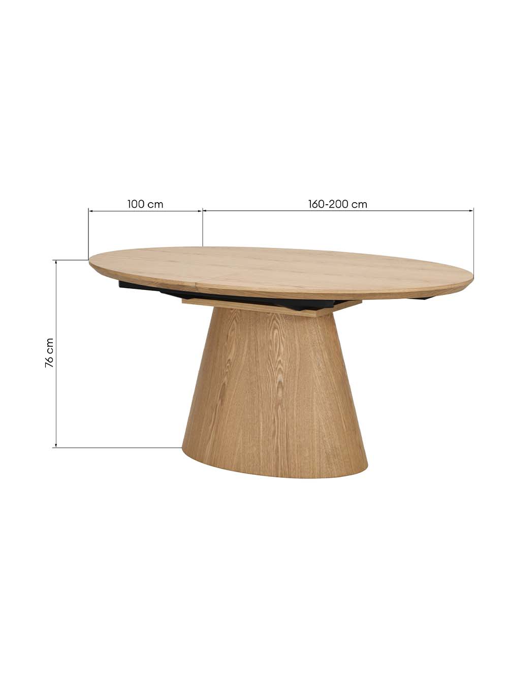 Valgomojo stalas Promo – tai elegancijos ir funkcionalumo derinys kasdienai. Ovali forma bei natūraliu uosio medienos lukštu faneruotas stalviršis suteikia jaukumo ir subtilios prabangos. Dėl prailginimo funkcijos (nuo 160 iki 200 cm) šis stalas puikiai tiks tiek kasdieniam naudojimui, tiek šeimos ar draugų susibūrimams didesniame rate. Tvirta, stabili konstrukcija užtikrina patikimumą ir ilgaamžiškumą, o apgalvotas dizainas pabrėžia šiuolaikišką stilių.