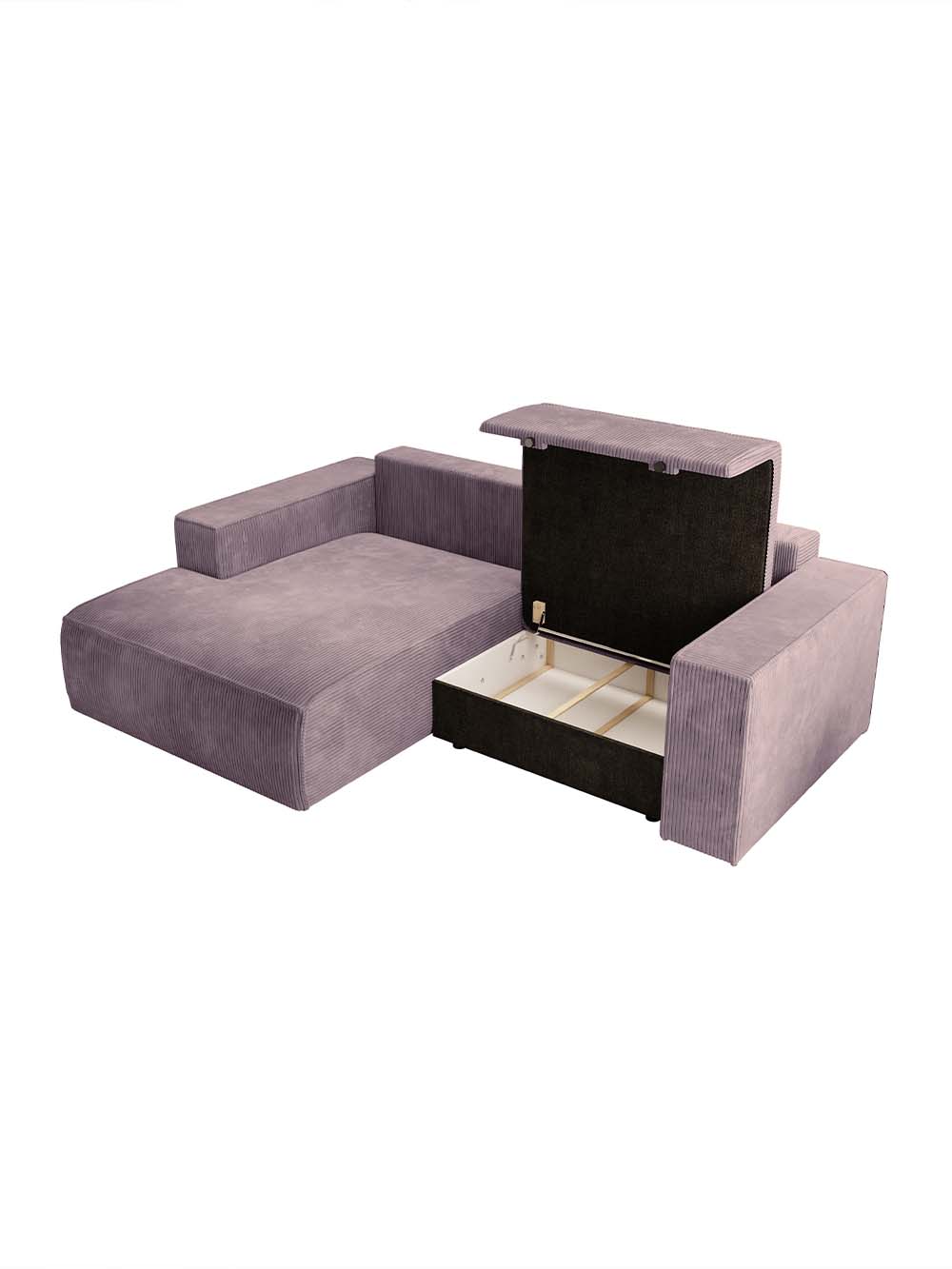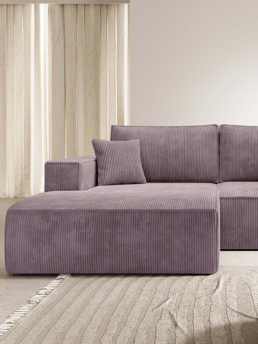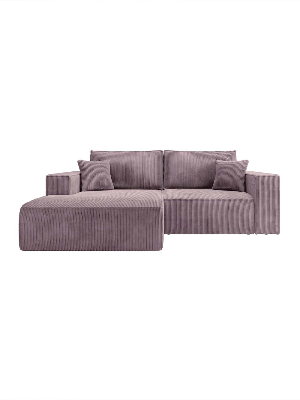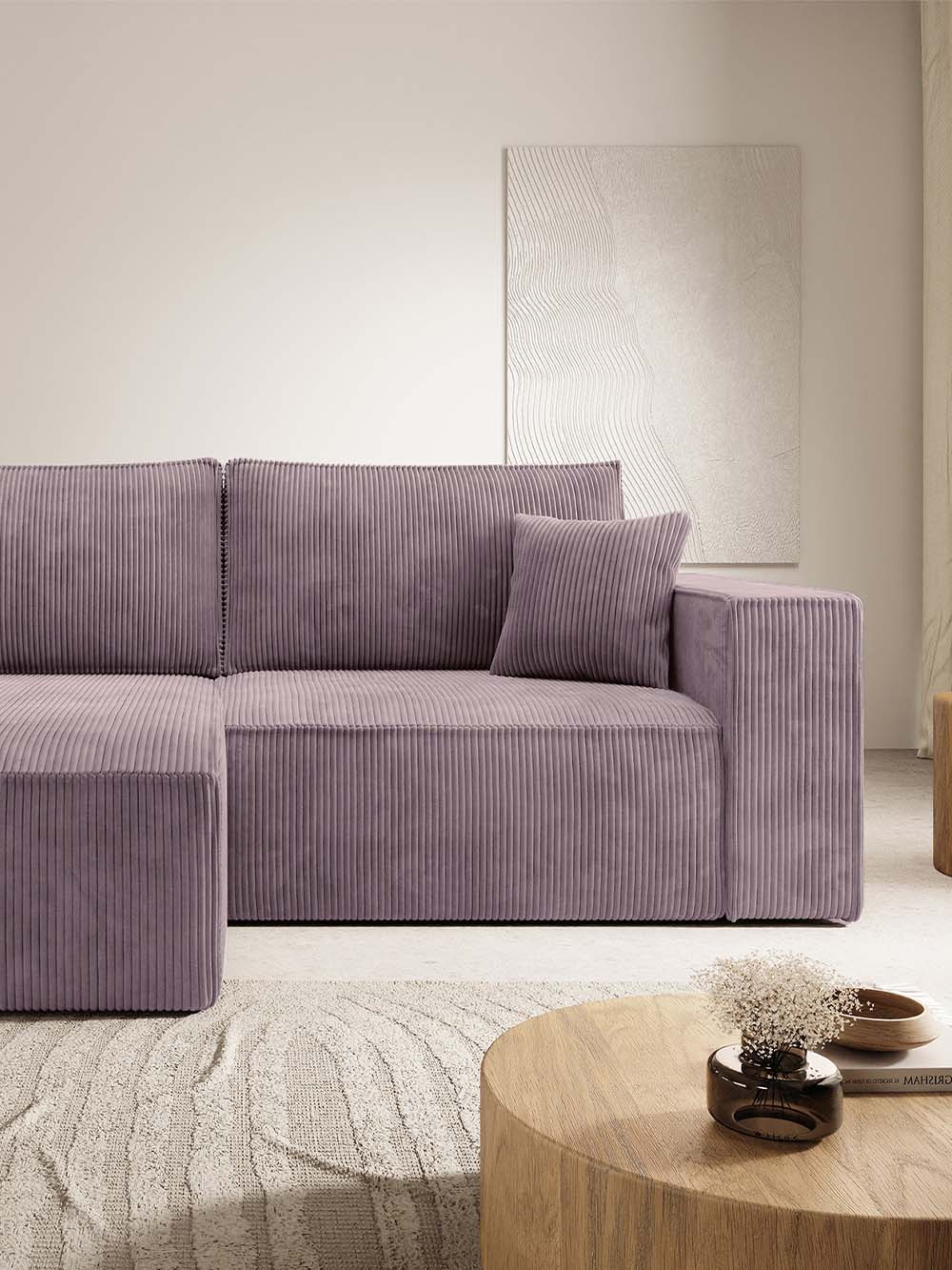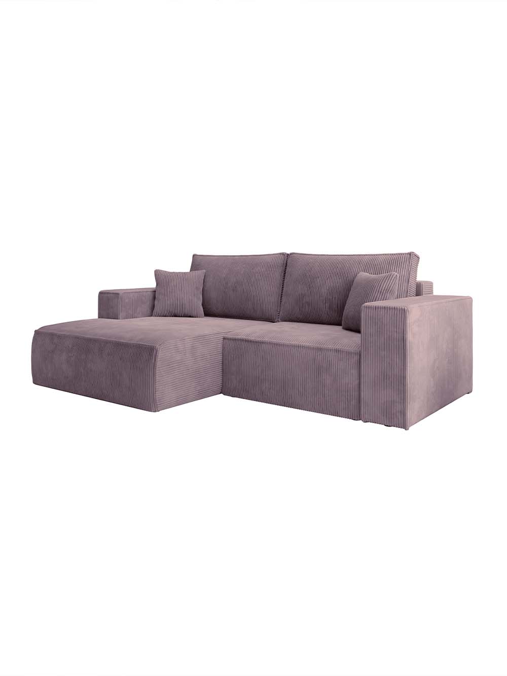 Kampinė sofa Amigo-mini – modernių, aiškių formų baldas, išsiskiriantis subtiliu minimalizmu ir išraiškingu siluetu. Švelniai rožinės spalvos velvetas su reljefine tekstūra kuria lengvą, romantišką ir jaukią atmosferą interjere. Tvirta konstrukcija garantuoja stabilumą bei patikimą kasdienį naudojimą. Platus atlošas ir minkšta, gili sėdimoji dalis leidžia mėgautis komfortišku poilsiu kiekvieną dieną.