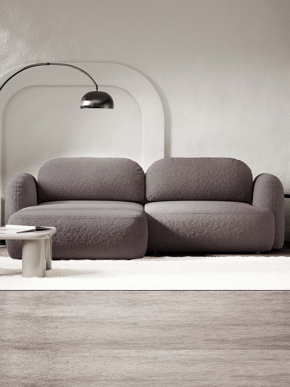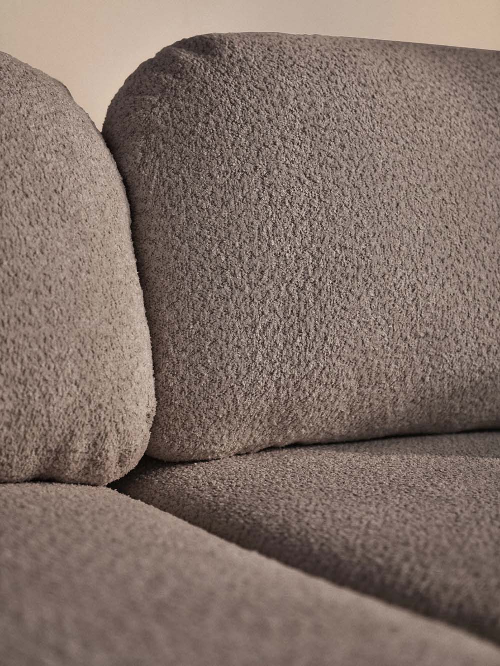 Apie audinį: Anthology – tai bouclé tipo audinys su minkšta, švelnia kilpine tekstūra ir subtiliu melanžo efektu. Jo paviršius malonus liesti, vizualiai išraiškingas ir suteikiantis baldams jaukumo. Audinys pasižymi dideliu atsparumu trinčiai, burbuliavimuisi bei šviesos poveikiui, todėl ilgai išlaiko tvarkingą ir estetišką išvaizdą net kasdien naudojant.